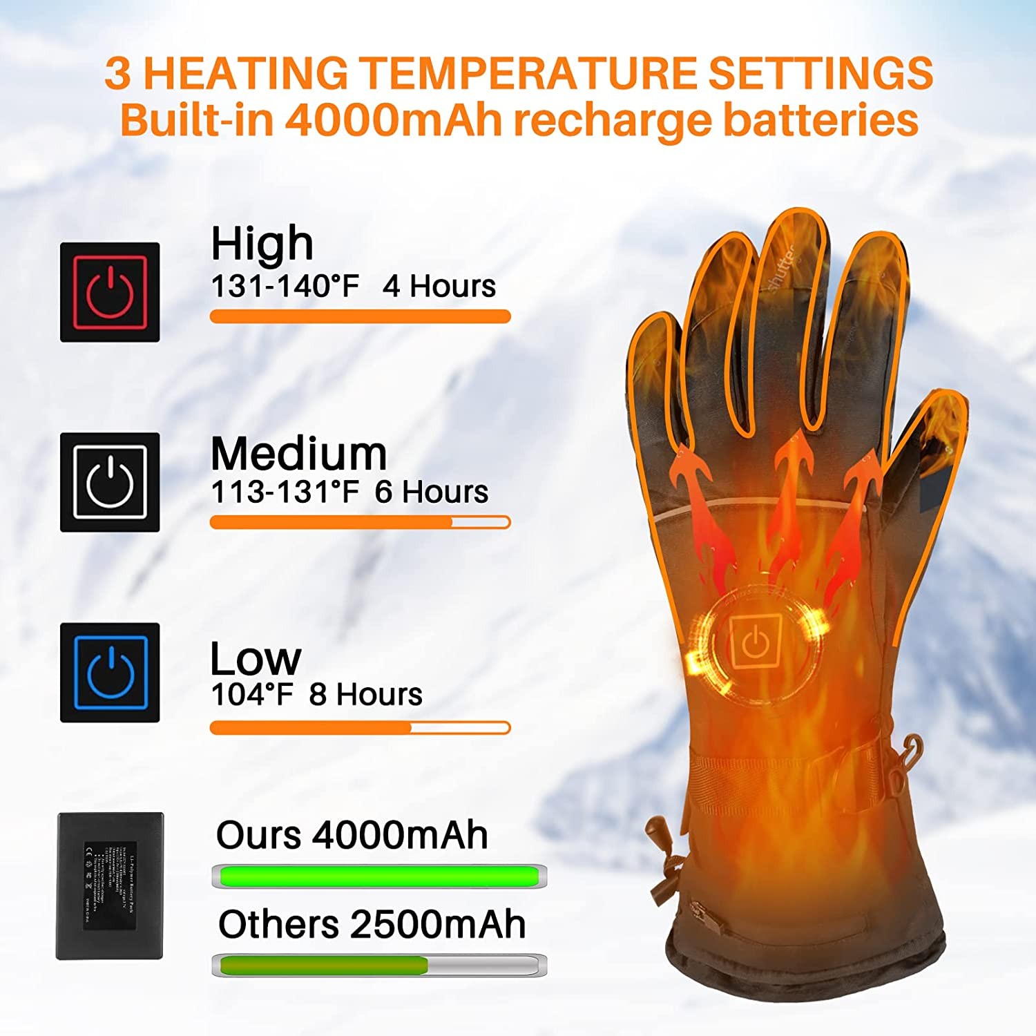 Woldsatr Heated Gloves for Men Women,Rechargeable Heated Glove Electric with 4000mAh Battery,Waterproof Motorcycle Heated Gloves with 3 Heating Levels for Working Camping Cycling Motorcycle