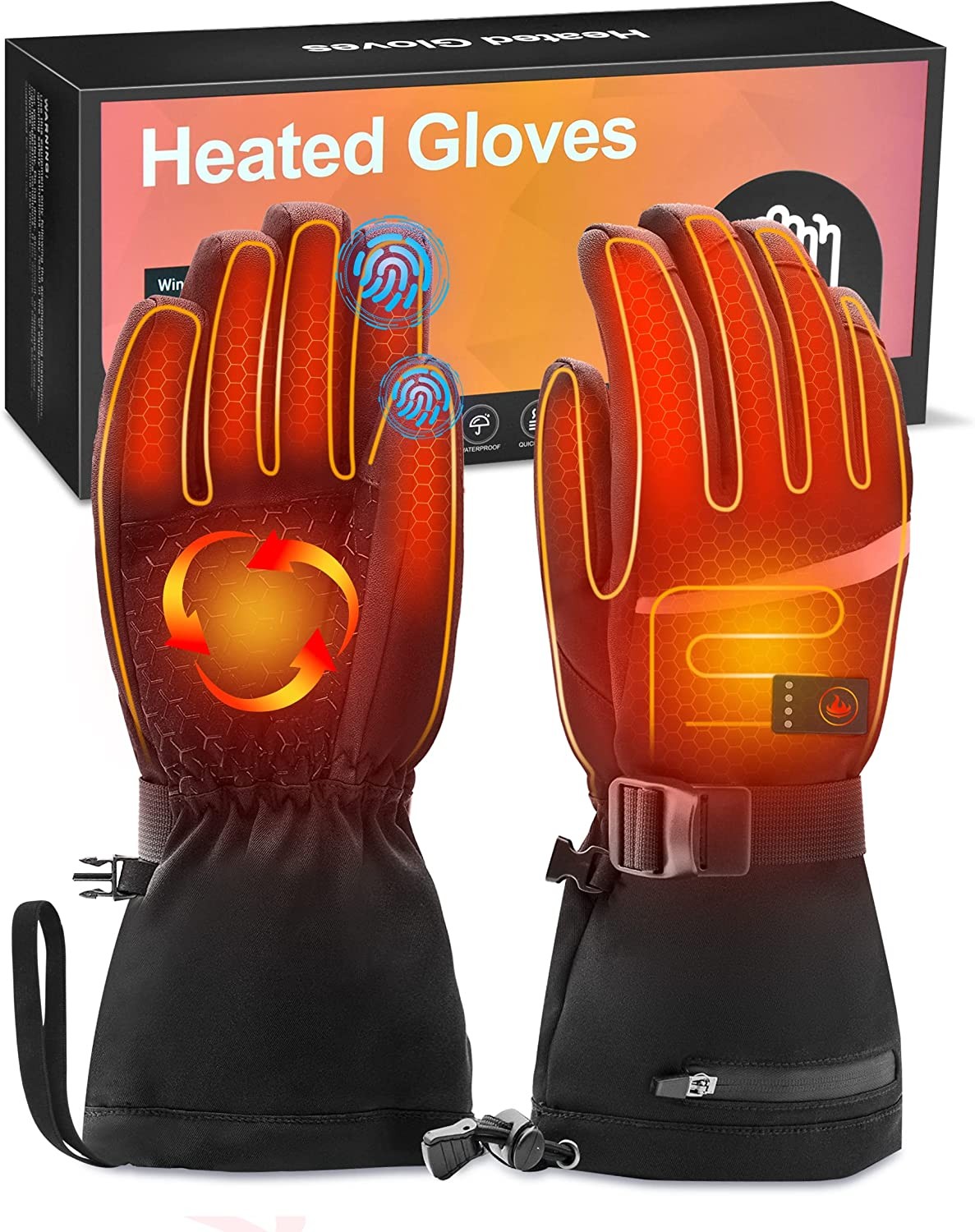 Heated Gloves for Men and Women, 7.4V Rechargeable Electric Heated Gloves, Heated Gloves with Touch Screen, Waterproof Heated Gloves for Indoor, Outdoor Sports and Raynaud, FFraao