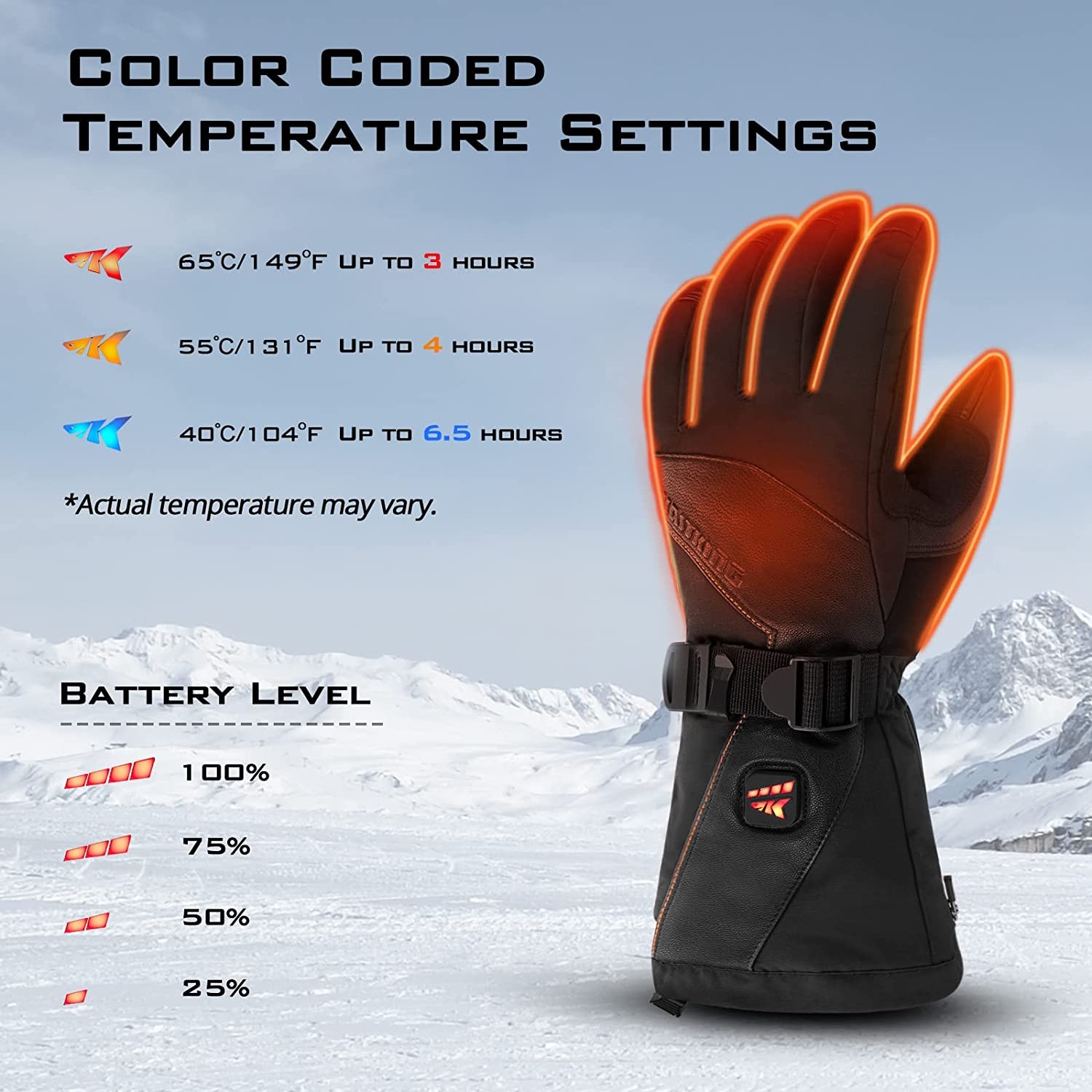 Imported Buckle closure [Long Lasting Heating in All Areas]: Polar Blast heated gloves use Digi Warmer Heat Technology equipped with secure components. The rapid heating system can warm the back, palm and all of your fingers all the way to the tips. Great for bad circulation and stiff joints people. Easy-to-read power button controls the adjustable temperature. High Heat setting: 65℃/149F will last up to 3 hrs, Medium Heat setting: 55℃/131F will last up to 4 hrs and Low Heat setting: 40℃/104F will last up to 6.5 hrs. [Waterproof, Windproof, Anti-slip]: The shell fabric has water-resistant DWR fabric treatment and the technological membrane in the mid layer provides waterproofing. The gloves also offer protection from wind even in the most severe conditions. Microfiber palms with printed polymer pattern hold an extremely good grip and provide stability when you hold anything. Touchscreen-compatible index finger and thumb allow easy operation of your electronic device without having to remove the gloves. [Moisture-wicking, Warm and Breathable]: The Heated Gloves are manufactured with warm, thick, and breathable 3M Thinsulate C100 polyester insulation, the soft fleece lining, and the waterproof membrane to keep your hands warm and dry in wet conditions but remain breathable. Designed with long cuffs that work well under your jacket sleeves or over the top of your jacket to block the cold. Adjustable wrist buckle cinch-down strap and drawstring ensure a perfect seal to keep heat in and cold out. [Safe and Rechargeable Battery]: Our lithium-ion batteries are RoHS and CE certified and offer up to 6.5 hours of battery life on low setting to keep your hands warm longer in cold weather. The batteries tuck into the water-resistant zipper cuff pouch allowing for reliable operation during the most extreme conditions. The winter heated gloves have an indicator for the battery level. The remaining battery-life bar display indicates remaining battery life. [For All Occasions]: KastKing heated gloves combine flexibility and warmth. It is very suitable for outdoor sports and work, such as motorcycling, skiing, hiking, cycling, fishing, walking, shoveling snow and so on. The winter gloves have multiple sizes and high-grade packaging, performance very well. These will be a great and practical Christmas gift for men, women, families, or friends.