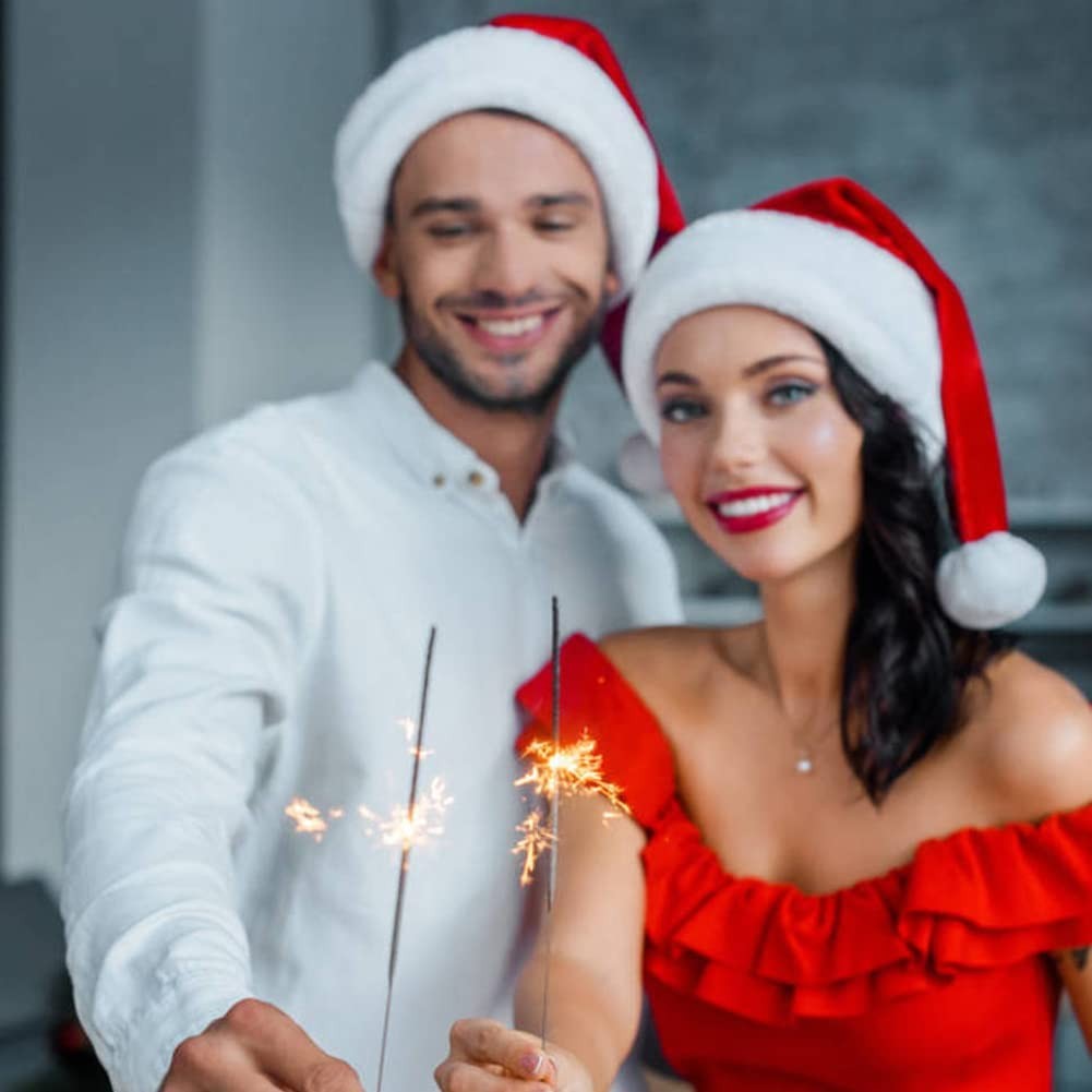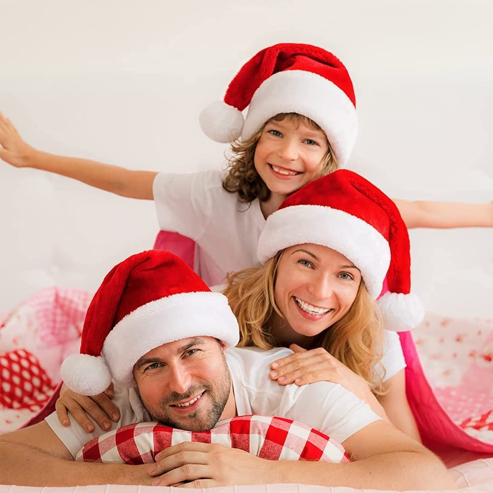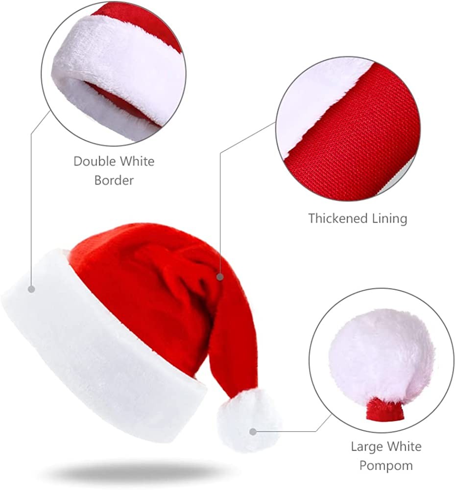 CHRISTMAS HAT SIZE: Large Christmas hat (Width×Height: 13×17.7inchs/33X45 cm) is suitable for most children, teenagers, etc. The small Christmas hat (Width×Height: 11.4×15.7inchs/29X40 cm) is suitable for most adults. Xmas hats are very suitable for taking photos with family and friends at Christmas time, leaving beautiful and warm memories. HIGH QUALITY: Santa hats are made of red velvet fabric, thicker design lining and white pompoms. The plush material is soft and comfortable to wear. High-quality Santa hats can be saved until next Christmas. THICK and WARM: not only can bring you a happy holiday atmosphere at Christmas, but also keep you warm in the cold, soft and comfortable fabric protects your head and hair. Feel the warmth and happiness in the new year. CLASSIC CHRISTMAS DECORATION: Xmas hat is the best prop headgear for Christmas, and it is also suitable for Halloween, Spring Festival, campus parties, holidays, birthday parties and other holiday decorations. Christmas hats bring a good atmosphere to Christmas and are fun gifts for children. PRODUCTS INCLUDE: 1 × S Christmas hat.