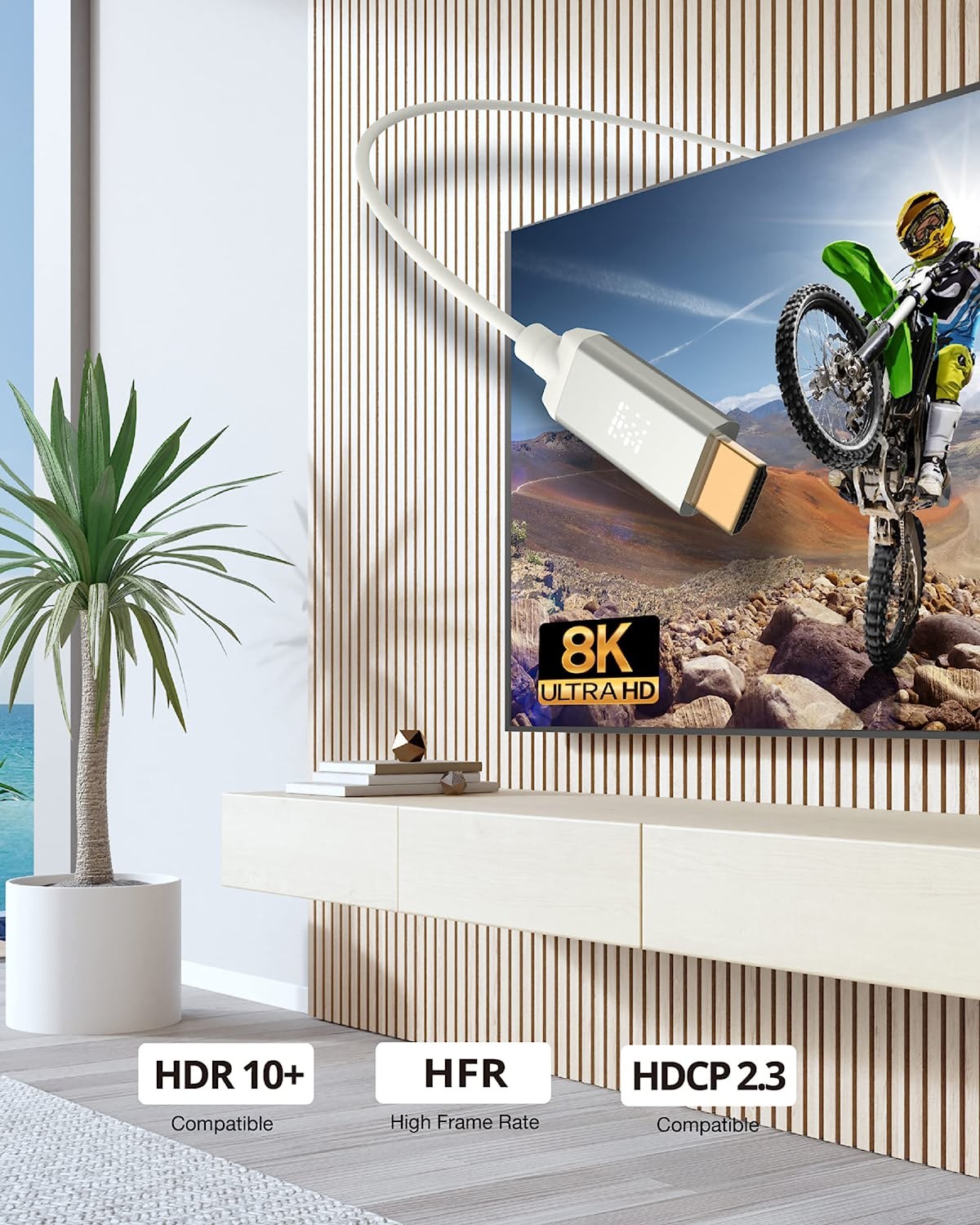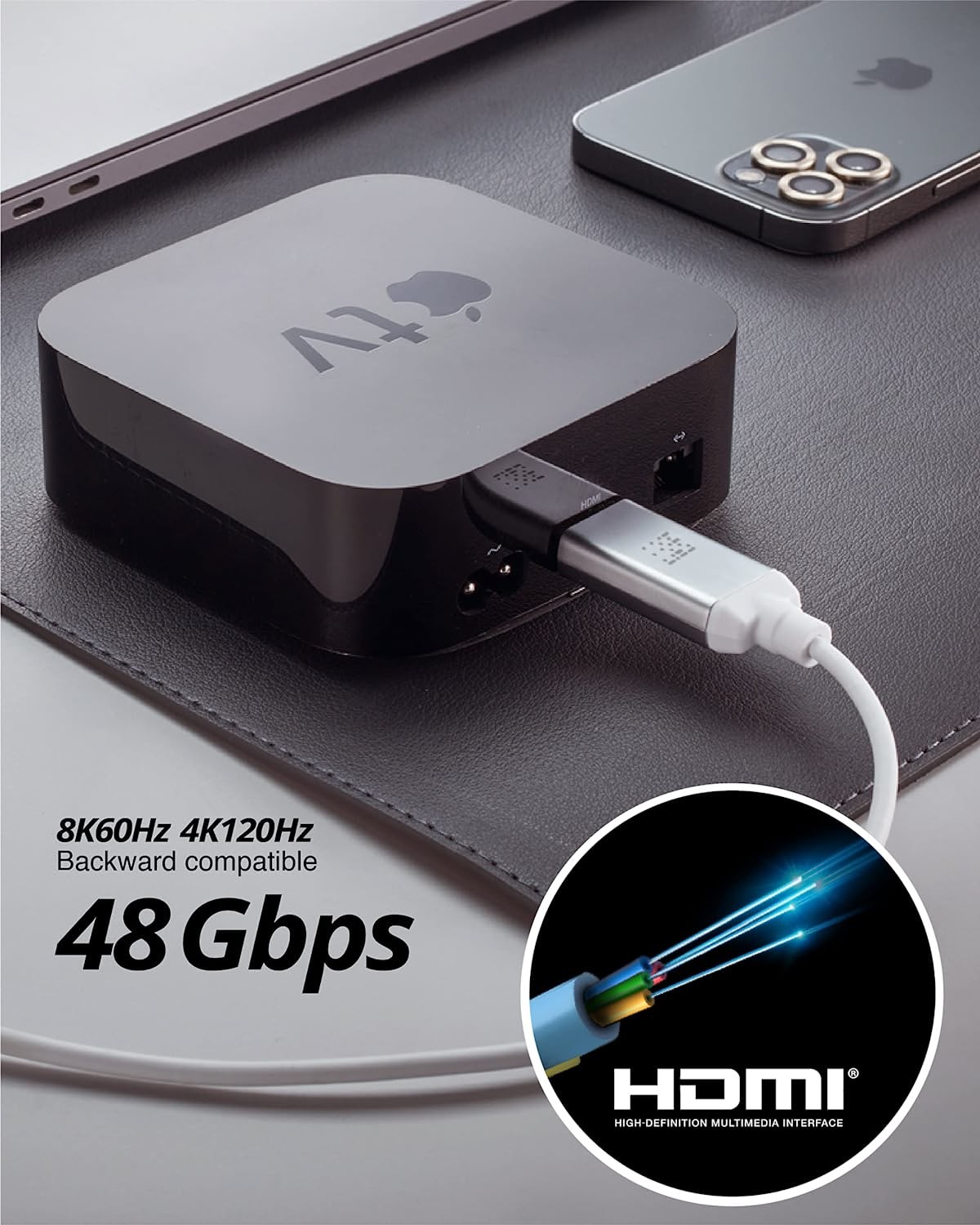 Made in Taiwan Ultra high-bandwidth of 48Gbps for 8K 60Hz and 4K 120Hz resolutions OD 5.2 mm (0.21 inch) slim and robust cable, and CL2 certified accepted for in-wall installation Fully compliant with HDMI 2.1, HDCP 2.3, dynamic HDR, and downward compatible Audio support eARC, Dolby TrueHD 7.1 channel, Dolby Atmos, DTS-HD Master Audio, and DTS:X
