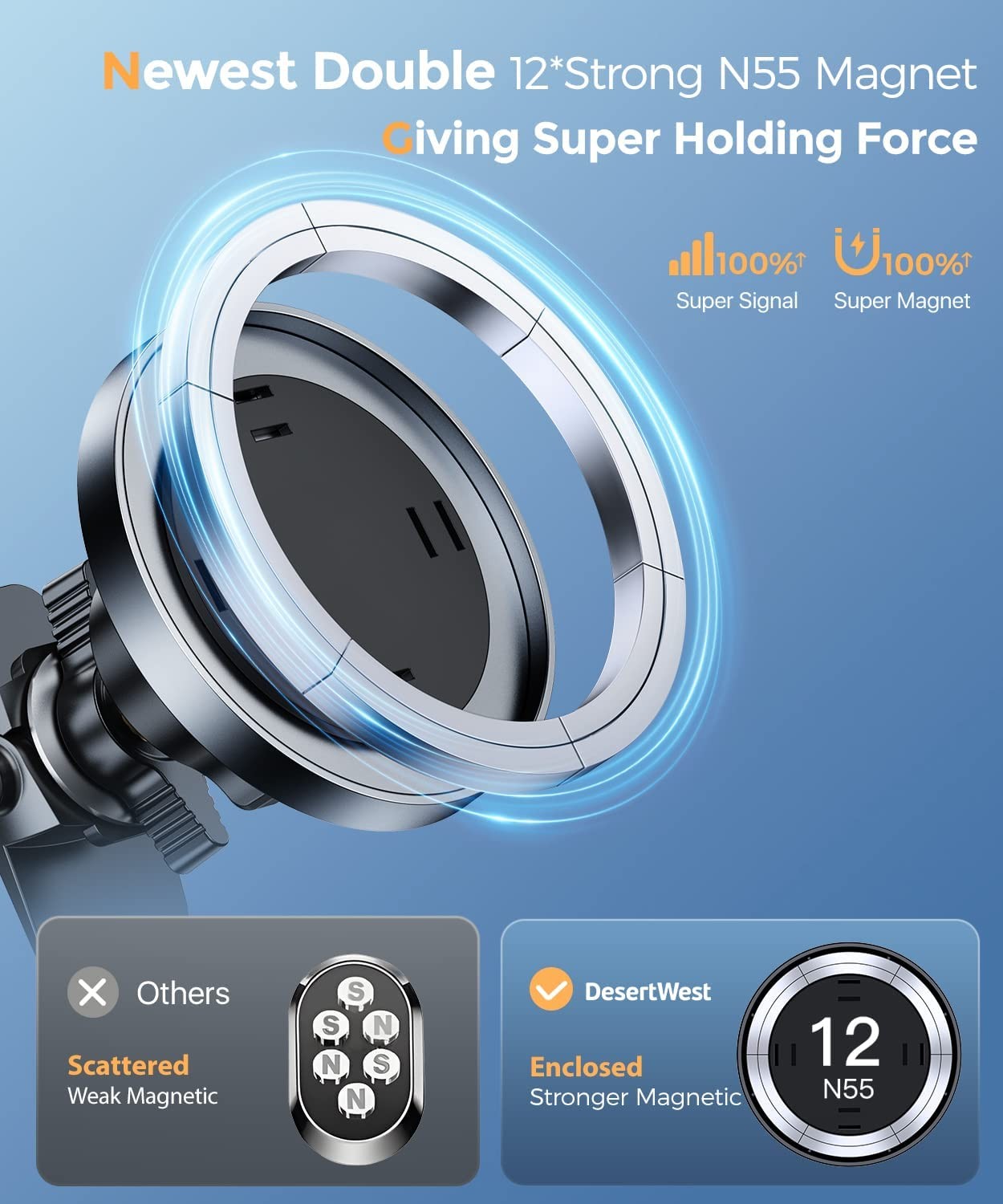 DesertWest Magnetic Phone Mount for Car [Newest Upgraded Super Strong Magnet] Hands Free MagSafe Car Mount for Vent 360° Adjustable, Compatible with Magsafe Case, iPhone 14 13 12 Pro/Plus/Max