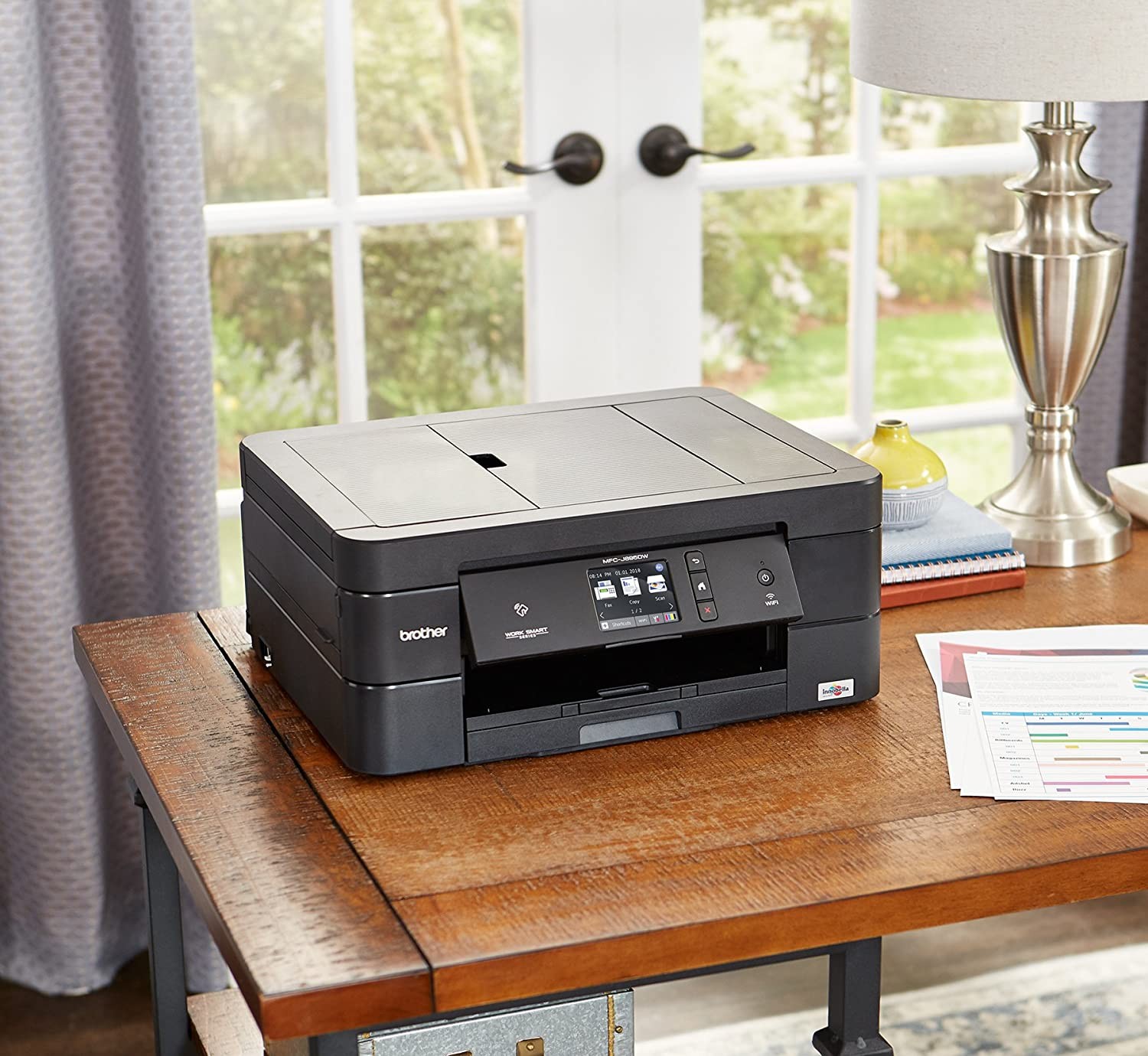 Simple to connect: Versatile connection options with built in wireless, Ethernet, or connect locally to a single computer via USB interface Mobile printing: Print wirelessly from mobile devices(1) using AirPrint, Google Cloud Print, Brother iPrint&Scan, Mopria and Wi Fi Direct Cloud connectivity: Print from and scan to popular Cloud services including Google Drive, Dropbox, Box, OneDrive,(2) directly from the MFCJ895DW Near field communications (NFC): No network setup needed for NFC one "touch to connect" mobile device printing and scanning(4) For use with brother genuine inks: LC3011BK, LC3011C, LC3011M, LC3011Y, LC3013BK, LC3013C, LC3013M, LC3013Y Amazon dash replenishment enabled: Upon activation, Amazon Dash Replenishment measures the ink level and orders more from Amazon when it’s low