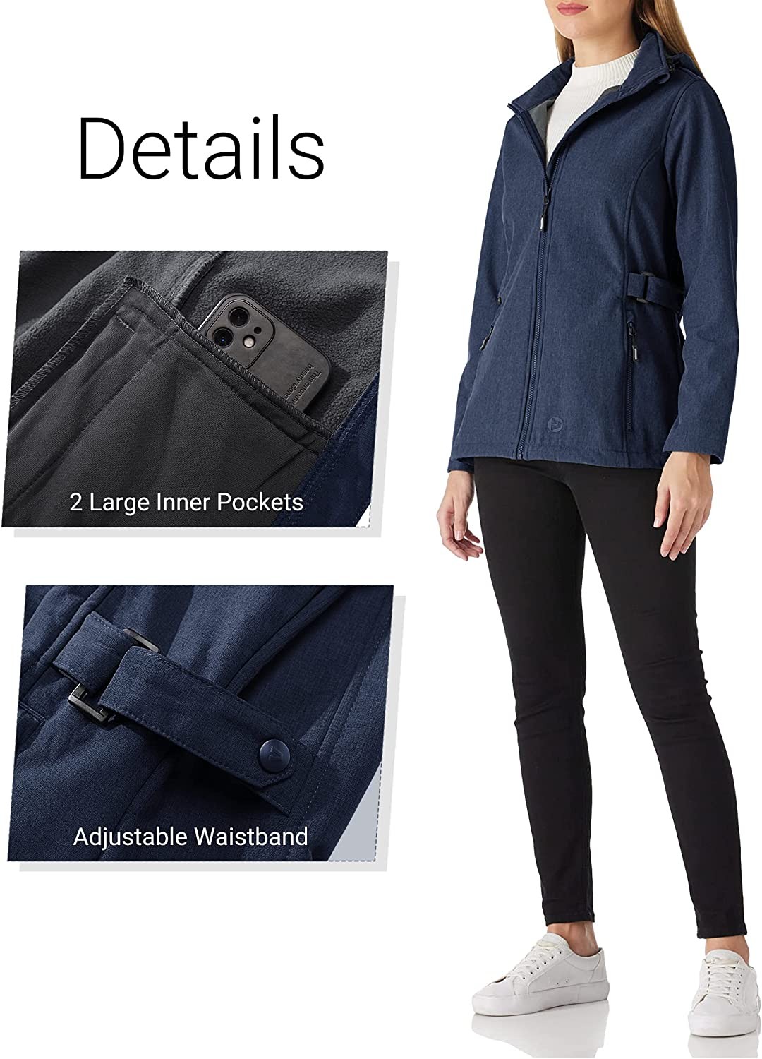 Shell: 94% Polyester and 6% Spandex; Lining: 100% polyester Imported faux fur Zipper closure Machine Wash Waterproof & Windproof & Lightweight & Warm: Outer sleek fabric is treated to repel water while maintaining breathability. Polyester synthetic material of the lining helps improve the breathability and transfer the moisture away quickly. Mid layer is waterproof membrane, effectively prevents rainwater seeping into the garment and keeps you dry and comfortable. (8000MM fabric waterproof rating, 1000G/M2/24hr fabric breathability rating) Windbreaker Jacket with Removable Hood:The detachable zip-off hood is adjustable with velcro on the back that keeps you well protected in rainy and windy days. Stand collar and adjustable waistband & hem offer a better fit and fashion style. Premium SBS zippers are smooth and long-lasting and zipper pullers have reflective elements for low-light visibility. Warm but Not Bulky: Made of high quality lightweight materials. Microfleece lining is very soft and comfortable to keep you warm without being bulky. 4 Roomy Pockets: There are 2 outside zippered security pockets and 2 inside patch pockets. It is great for storing money, keys, phone, wallet, passport, etc, providing great privacy and convenience for you. Versatile: This women's fleece lined softshell rain jacket and windbreaker is suitable for casual wear or spring / fall / winter outdoor activities like outdoor sports, working, walking, hiking, traveling, cycling, mountaineering, camping, climbing, fishing, hunting, running, etc, and great as birthday gifts to give to women.