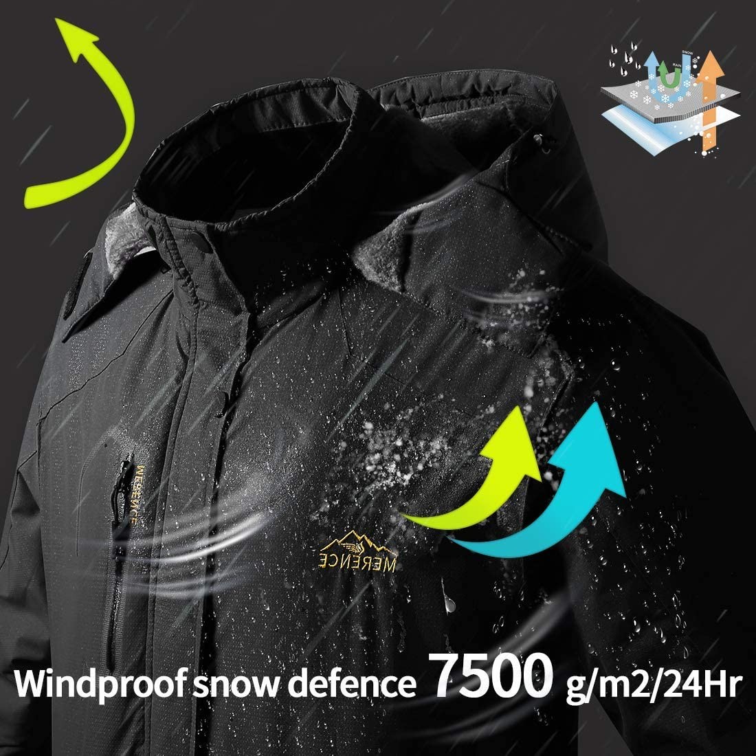 Material: 100% Polyester;Cotton lining Imported Warm and Lightweight Material: Professional water repellent coated, durable fabric with soft fleece lining and ultra light weight cotton warm padding which guarantees the best heat retention. Relaxed-fit style Waterproof: Water-repellent rain jacket can work under over 10115mm pressure head. Keep your body comfortable when you are outside, also can fights bad rainy or misty weather. Windproof: ① Adjustable cuffs, stretchable glove with thumb hole help seal in warmth.② Inside windproof snap powder skirt, internal drawcord hem, detachable and adjustable storm hood help to keep wind out. ③ Wear resisting soft shell is highly wind resistant. Multi Pockets: 2 zippered hand pockets, 1 zippered chest pocket (passport or cards stowed), 1 internal pocket, 116 internal secure media pocket. An earphone line fastening and supporting fixture available inside the jacket. Occasions : The winter coat is great for indoor and outdoor activities such as skiing, snowboarding, skating, mountaineering, hiking, camping, fishing,cycling , camping ,running and other winter outdoor sports.