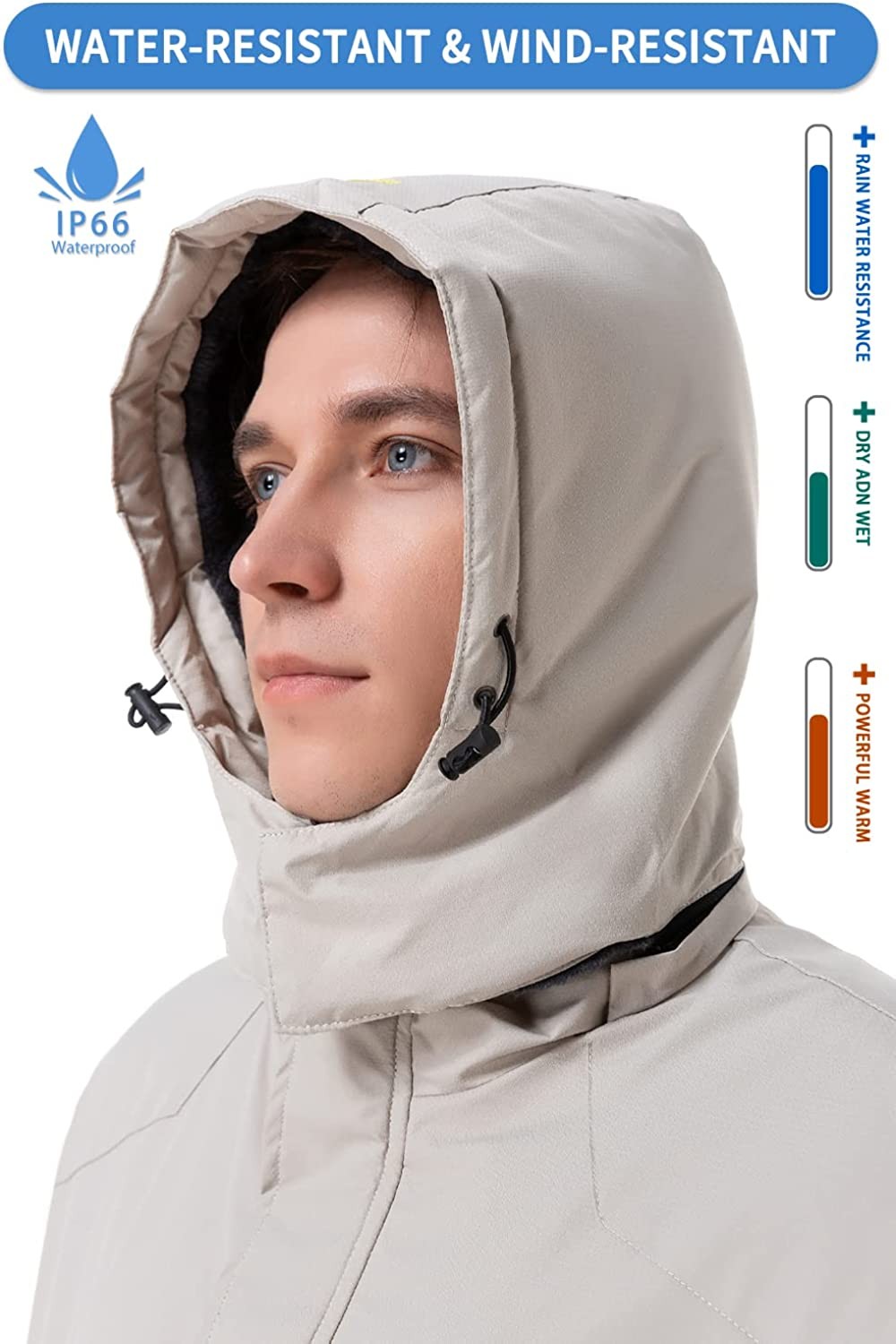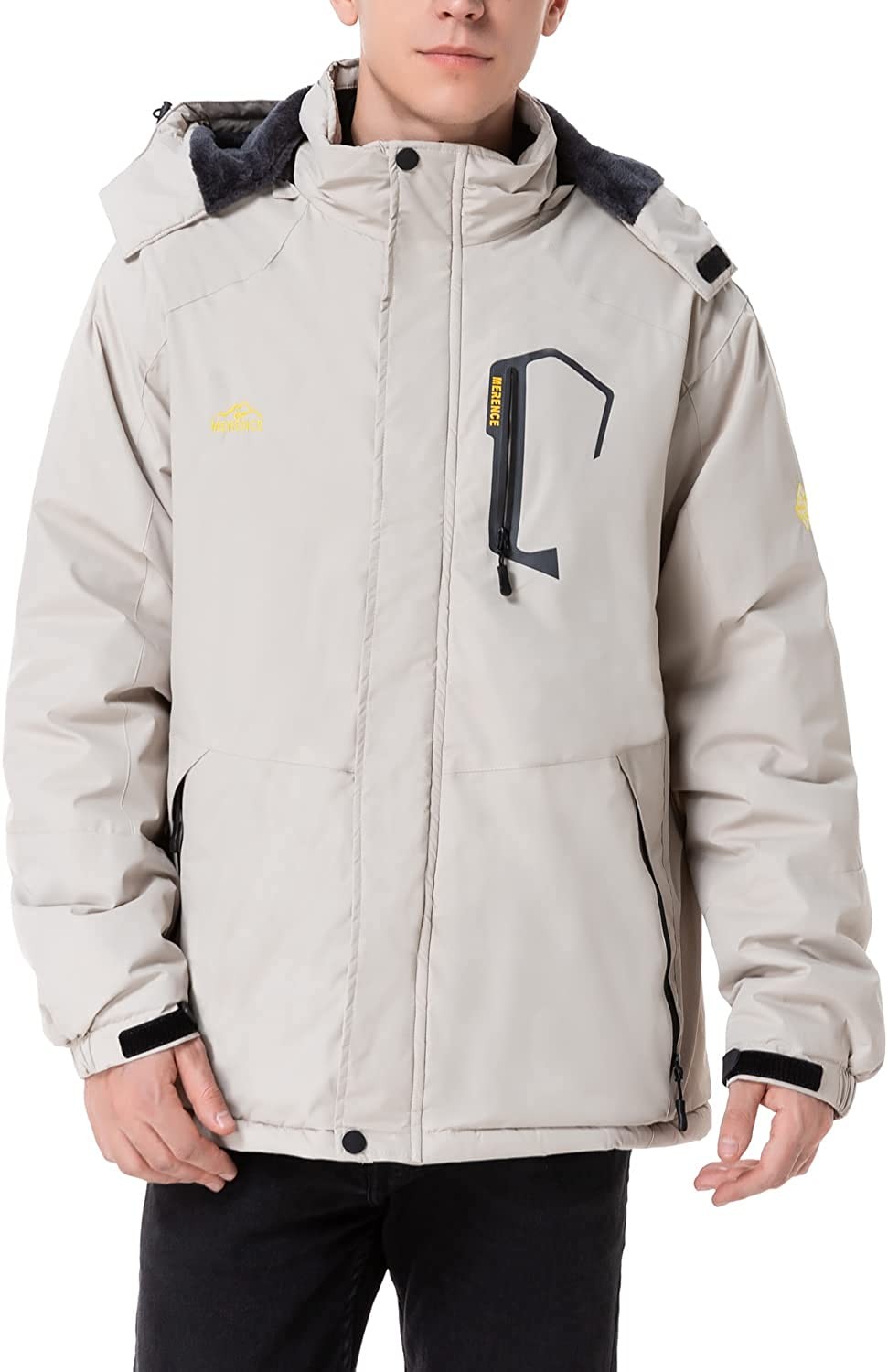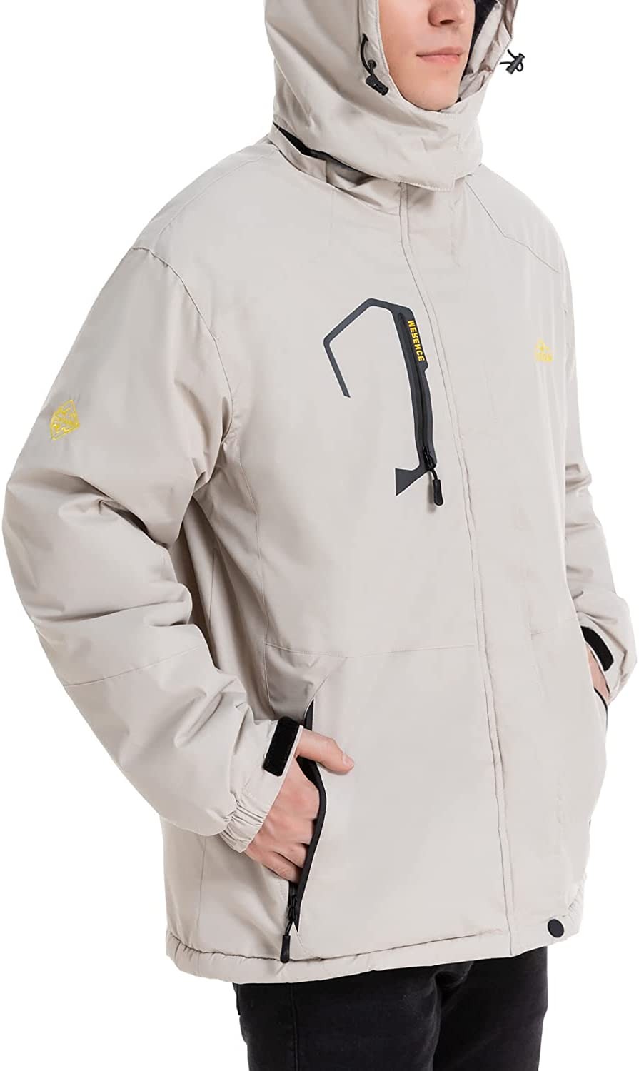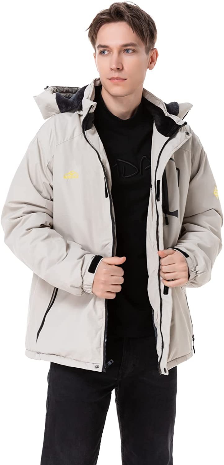 Material: 100% Polyester;Cotton lining Imported Zipper closure Hand Wash Only Warm and Lightweight Material: Professional water repellent coated, durable fabric with soft fleece lining and ultra light weight cotton warm padding which guarantees the best heat retention. Relaxed-fit style Waterproof: Water-repellent rain jacket can work under over 10118mm pressure head. Keep your body comfortable when you are outside, also can fights bad rainy or misty weather. Windproof: ① Adjustable cuffs help seal in warmth.② Inside windproof snap powder skirt, internal drawcord hem, detachable and adjustable storm hood help to keep wind out. ③ Wear resisting soft shell is highly wind resistant. Multi Pockets: 2 zippered hand pockets, 1 zippered chest pocket (passport or cards stowed), 1 internal pocket, 119 internal secure media pocket. An earphone line fastening and supporting fixture available inside the jacket. Occasions : The winter coat is great for indoor and outdoor activities such as skiing, snowboarding, skating, mountaineering, hiking, camping, fishing,cycling , camping ,running and other winter outdoor sports.