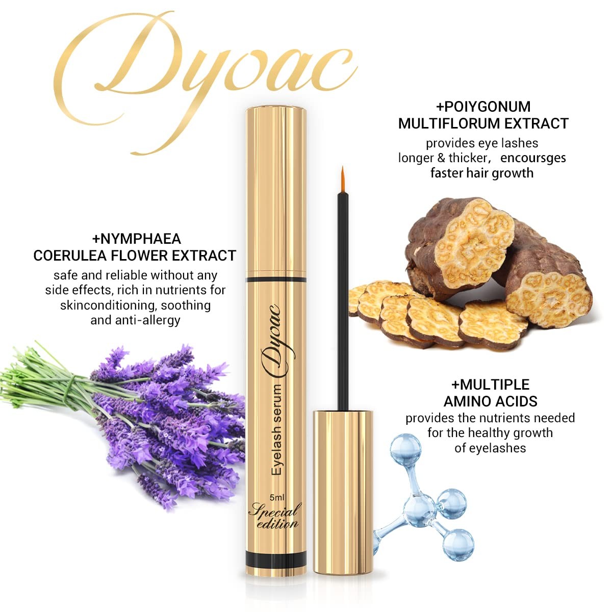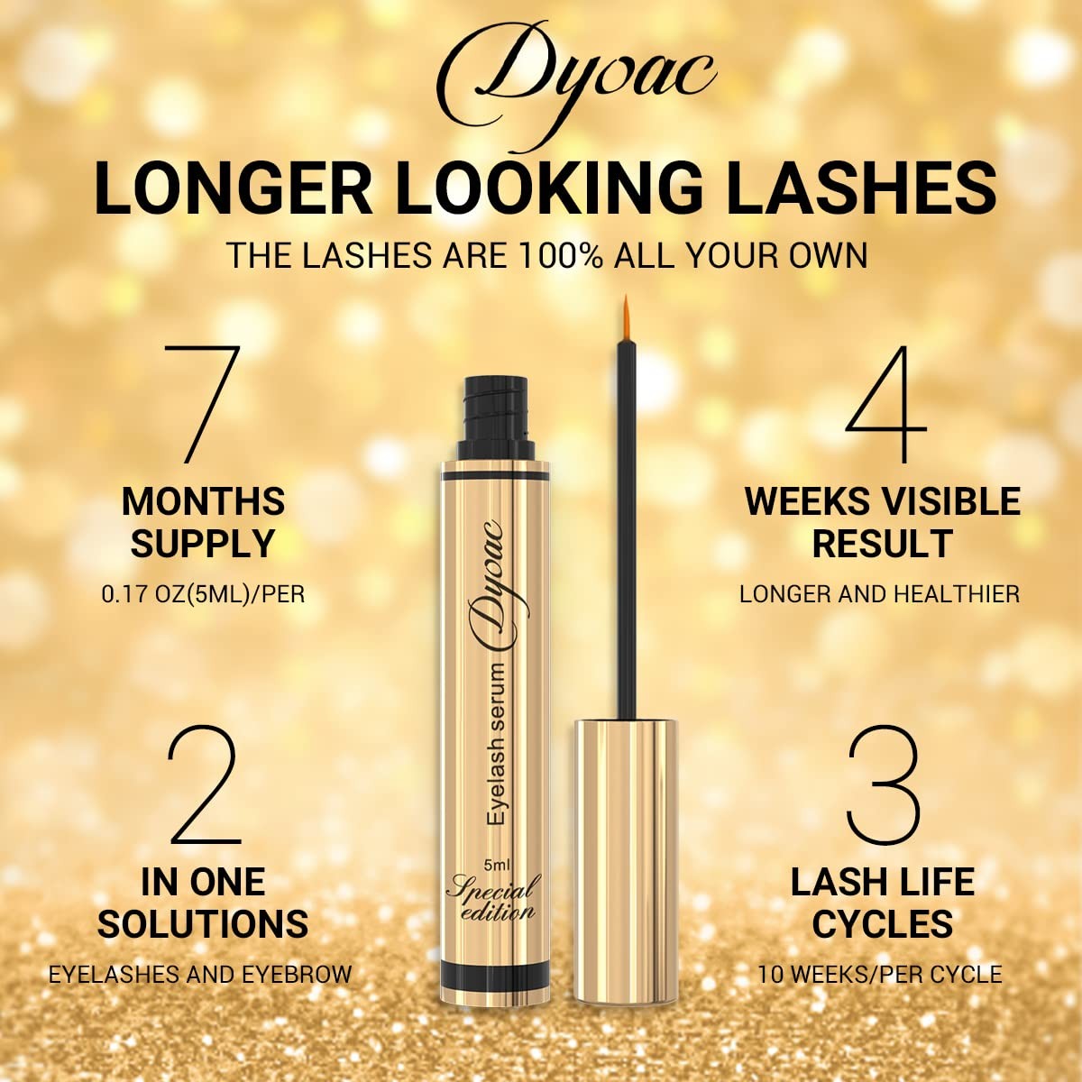 Fast Results: With only 3 weeks of daily use, Our formula has been proven to help boost the thickness and the length of eyelashes. In 6 weeks of daily use, 95% of our customers saw their eyelashes grow 50% in length Say Goodbye to False Lashes: Say goodbye to fake lashes & try our Dyoac eyelash boost serum. It will help you create beautiful, effortless, and natural lashes which will stay with you forever Simple to Apply: Eyelash growth serum is as simple to apply as your go-to eyeliner and comes with a fine-tip brush. brush on a thin coating at the root lines, moving from the inner to the outside corner of your eyes to hydrate follicles, encourage the growth of new hairs, and fortify existing follicles Longer and Stronger: Our nourishing development lash growth serum encourages the growth of new eyelashes and strengthens existing hairs for bold, dramatic-looking eyes. thin, sparse, and brittle lashes get a magical boost from this sophisticated composition eyelash serum Gentlest Formula: Eyelash growth serum ingredients from plants impart shine and sheen without signs of redness and irritation. use both in the morning before applying makeup and at night as part of your skincare routine