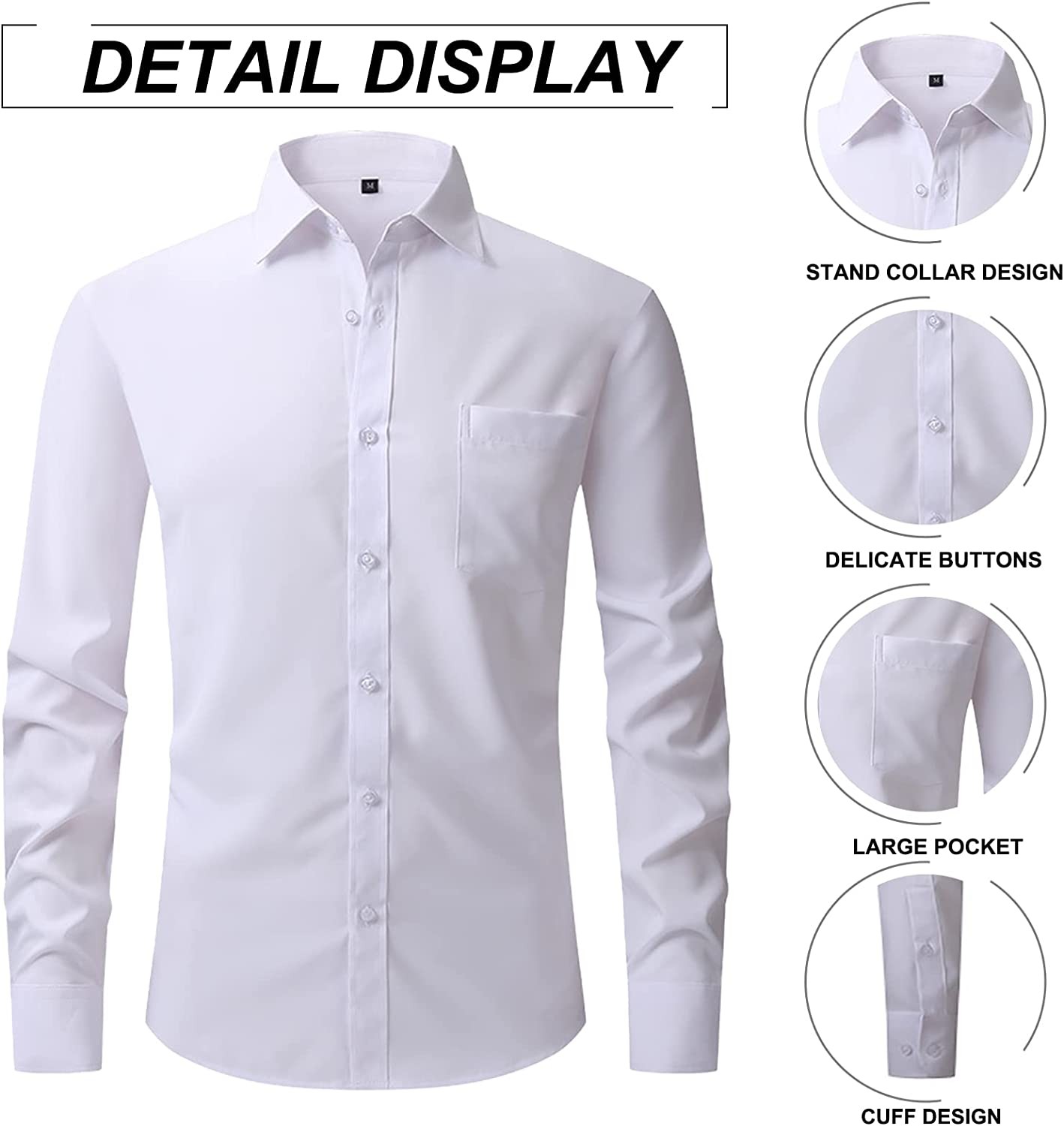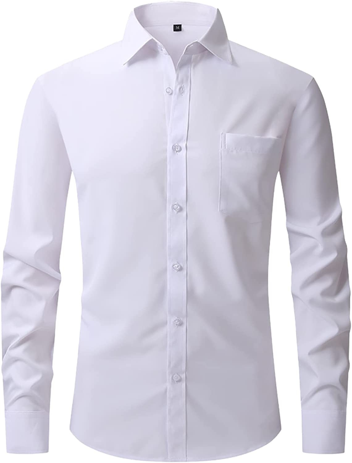95% Polyester, 5% Spandex Imported Material: Mens dress shirt made of polyester and spandex, slightly stretchy, breathable and comfortable, and easy to iron save your time. Design: Men's business shirts features a spread collar, cuffs with two buttons, left chest pocket, regular fit, solid color, flatter your body shape perfect. Occasion: Men's button down shirts, a must for formal occasions such as weddings, cocktail parties, dinners, interviews and business meetings, or casual settings, such as on a date or out with friends. Colors: A variety of colors dress shirt to match different personal styles and preferences, classic and versatile color include white, light blue, pink, lavender, and grey, and other bright colors. Size: Please check the size chart before you purchase, if you have any question, please tell us freely. Notes: The colors rendered may vary due to different shooting light and screen display.
