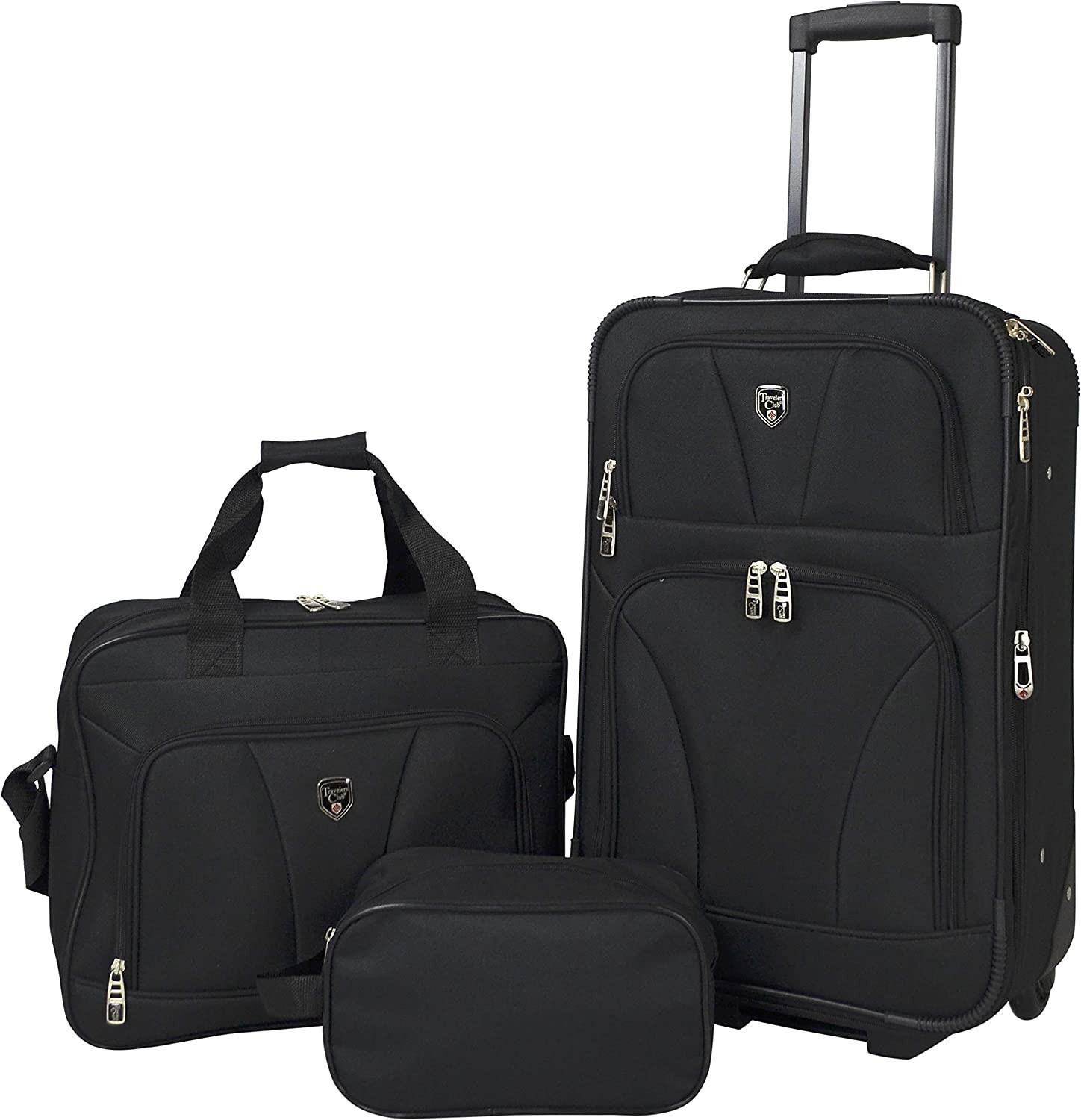 Travelers Club Bowman 3-Piece Expandable Luggage Set, Black, (Dopp/Tote/20)