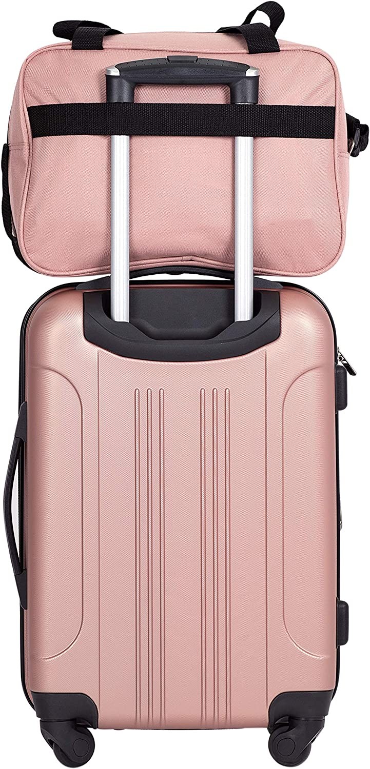 26" Spinner suitcase: 26" H x 17. 5" L x 11" W, 8. 4 lbs. 20" Carry-on spinner luggage: 20" H x 13" L x 9. 5" W, 7. 2 lbs. Boarding tote: 10" H x 15" L x 5" W, 1 lb. Travel kit toiletry bag case: 5" H x 10" L x 5" W, 0. 5 lb. Features pockets for accessories
