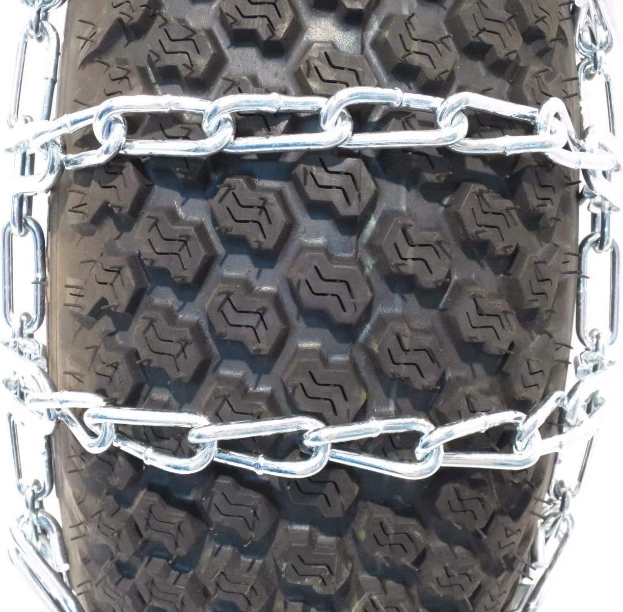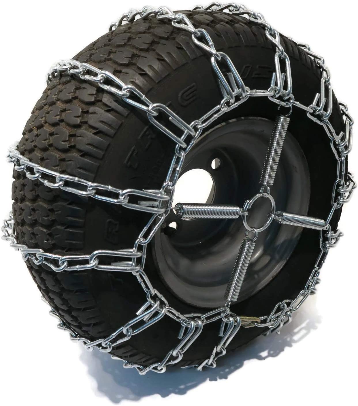The ROP Shop replacement Tire Chains & Tensioners fit 15x6x6, 14x5.5x5, 15x5x6 Tires Specs - Outside Links 0.157" (4mm), Crosslinks 0.178" (4.5mm). Number of Cross Chains: 12. Refer to images 2 & 3 for more information Includes - (1) Pair of Zinc-Plated, 2-Link Tire Chains & (1) Pair of Chain Tensioners; comes as shown in the first image. Tires NOT Included. Please Note: Tire chains in picture are a representation. They are not the exact tire chains you will receive Double check your exact tire size to be sure that these tire chains will fit your unit properly. Do NOT purchase based on model alone For turf tires ONLY. Use for snow & mud