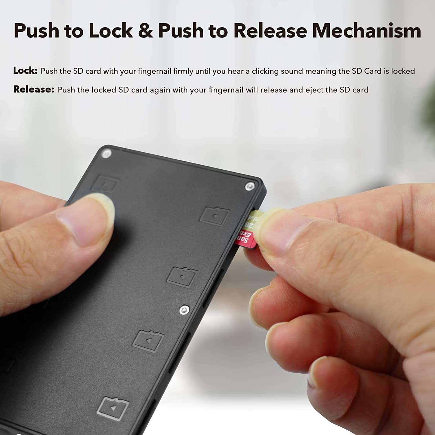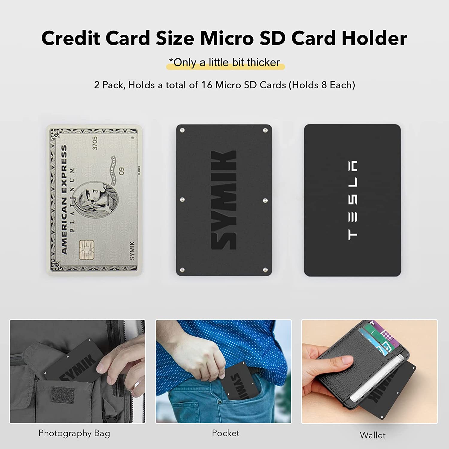 SYMIK Micro SD Card Holder Case (2 Pack), Credit Card Size Micro SD Card Storage Organizer Keeper Case with Push Lock and Push Again Release Design; Great for Drones, Aerial Photography, 360 Camera