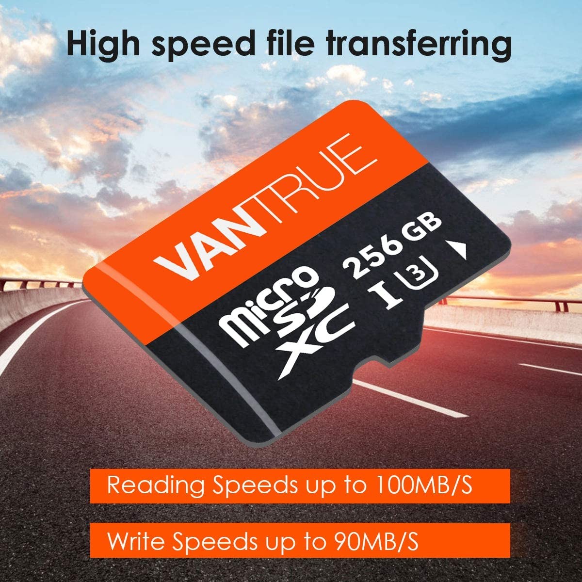 Vantrue 256GB microSDXC UHS-I U3 4K UHD Video High Speed Transfer Monitoring SD Card with Adapter for Dash Cams, Body Cams, Action Camera, Surveillance & Security Cams