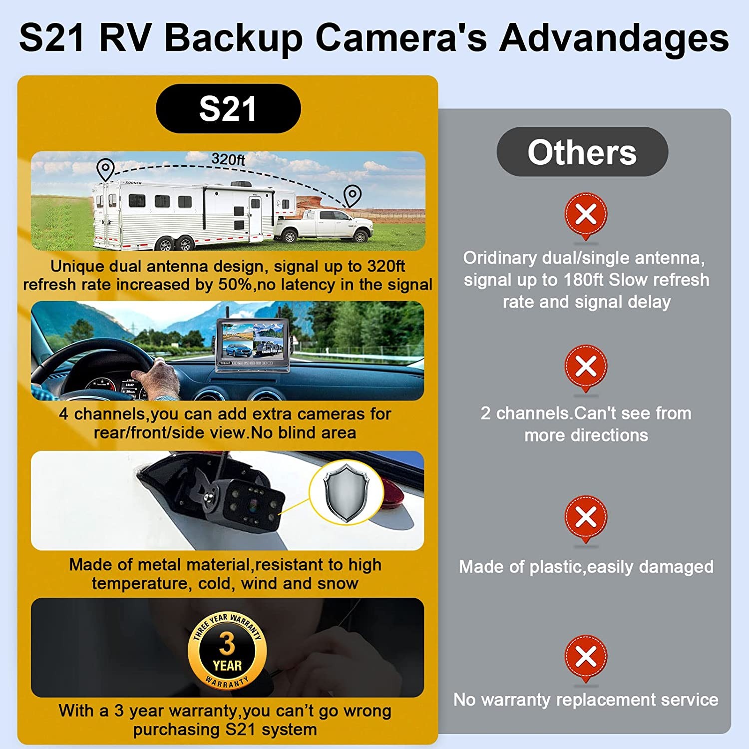 DoHonest RV Backup Camera Wireless HD 1080P with 7‘’ Touch Key DVR Monitor, 2022 Newest Version Rear View Camera Stable Signals Adapter for Furrion Pre-Wired for RVs,Truck,Trailer,IR Night Vision S21