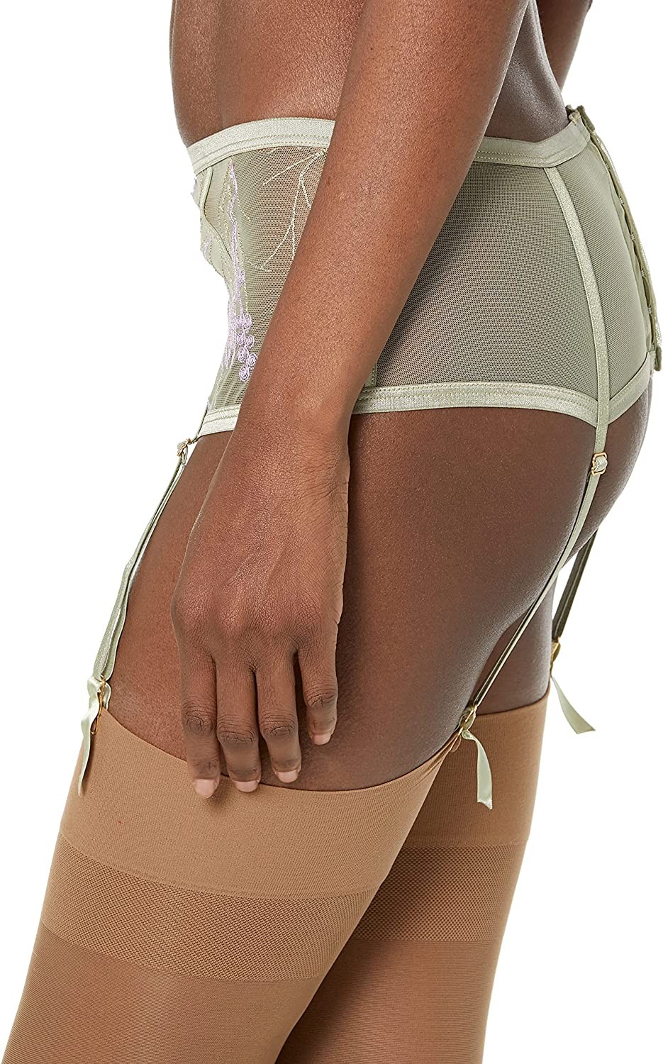 Snaps to attach to Thigh-high stockings (not included). Hook closure back