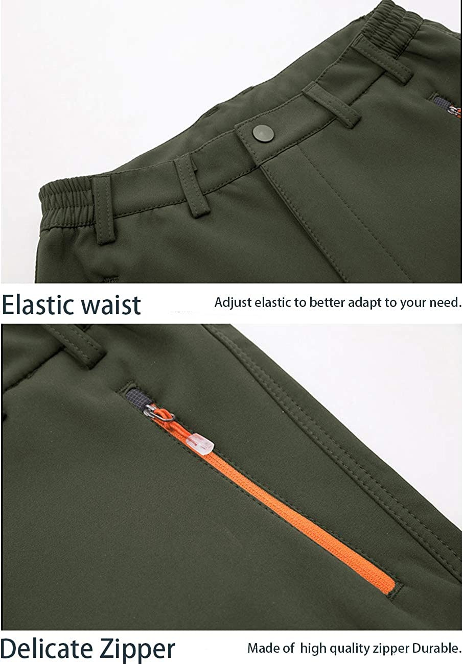 Zipper closure Material: 92%Polyester, 8%Spandex; Comfortable fabrics bring you a wonderful experience. 4 Zipper Pockets: The hiking pants have two zipper pockets on the front, one front zipper pocket on the right thigh, and one zipper pocket on the right side of the hip; Multi-pocket design can better meet your needs. Elastic waist: The adjustable elastic waist and the design that can use the belt help the pants fit you better. Features: windproof, warmth, durable and wear-resistant; Designed for winter outdoor enthusiasts, knee anti-scratch fabric and thick fleece lining design can better protect your body. Suitable for: Daily wear in winter, hiking, camping, snowboarding, travelling, hunting, cycling and other outdoor sports.