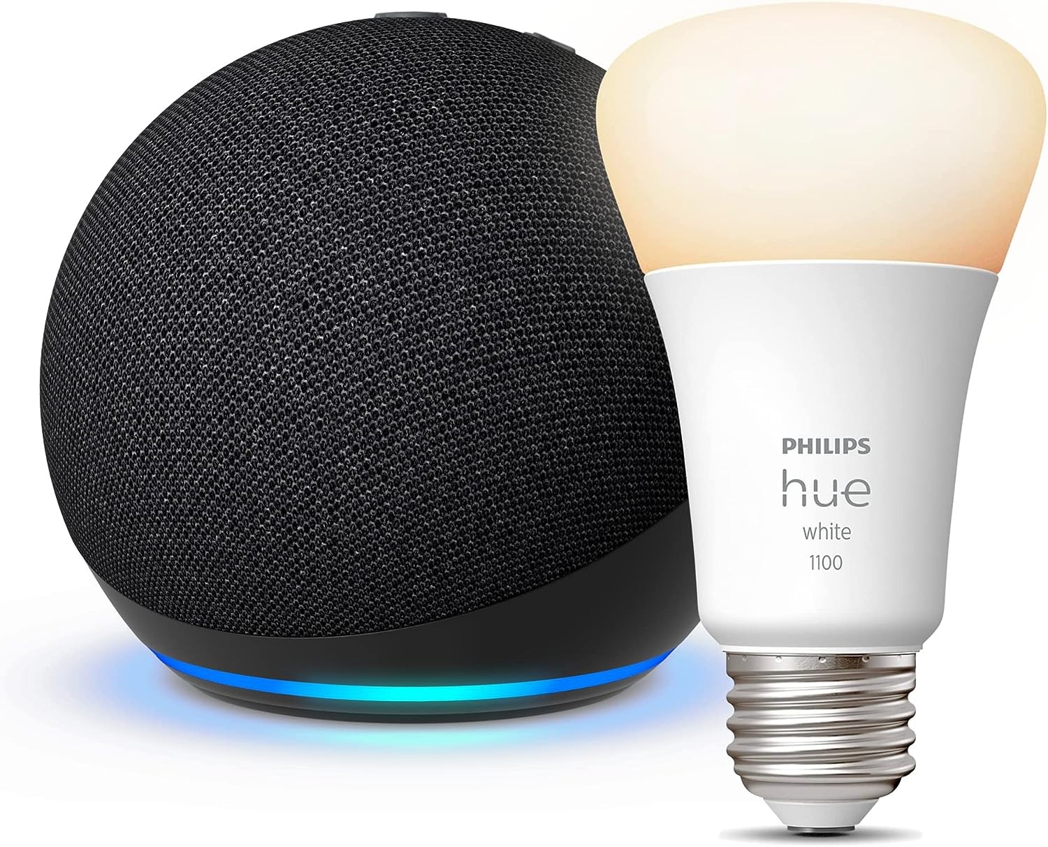 All-New Echo Dot (5th Gen, 2022 release) | Smart speaker with Alexa | Charcoal + Philips Hue White A19 Medium Lumen Smart Bulb, 1100 Lumens