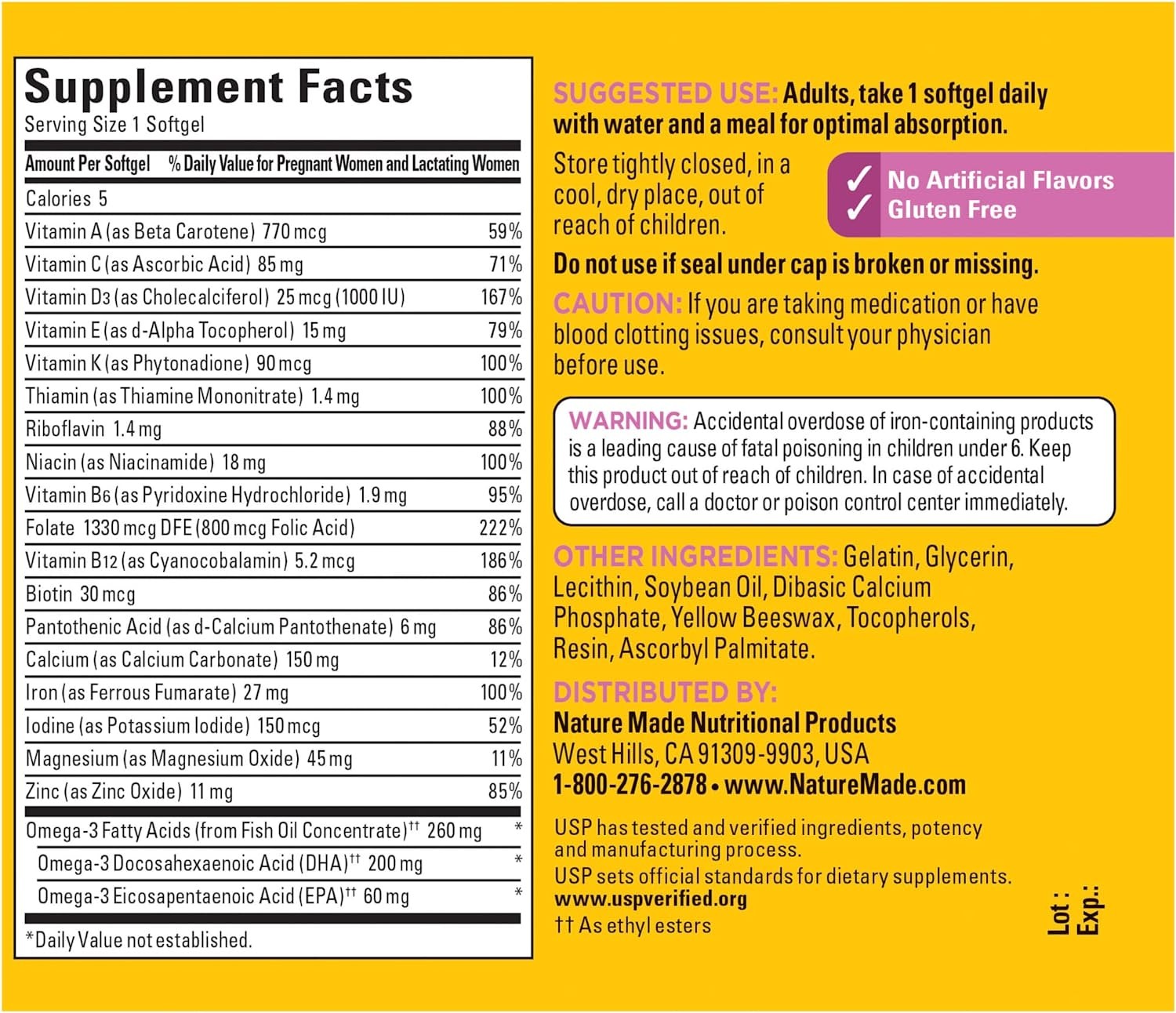 HIGH POTENCY PRENATAL MULTIVITAMIN: Nourish mom’s health and baby’s development through conception, pregnancy, and breastfeeding with folate, calcium and iron, while promoting energy with a potent B vitamin complex PRENATAL SUPPORT FOR BABY: Supports Baby’s brain & neural tube development in the first trimester* SUPPORTS IMMUNE HEALTH: This women’s prenatal multivitamin helps support immune health as a high-potency source of zinc, and supports red blood cell health* ORGANIC SUPERFOODS BLEND WITH PROBIOTICS: This daily vitamin is formulated with blends derived from organic fruits and vegetables, and contains probiotic digestive enzymes* NON-GMO AND VEGETARIAN: This Non-GMO Project Verified, vegetarian prenatal supplement is made with no colors, flavors or sweeteners