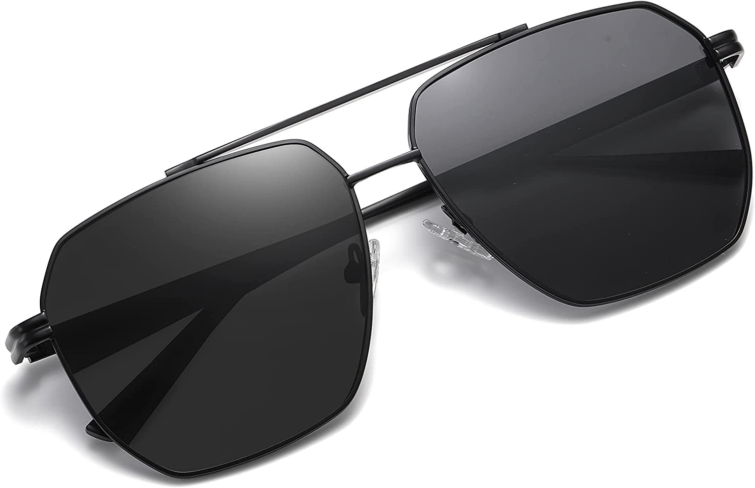 Imported Metal frame Tri Acetate Cellulose lens Scratch Resistant UV Protection Water Resistant coating Lens width: 2.32 inches Lens height: 2.09 inches Bridge: 0.71 inches Arm: 5.98 inches ★HD TAC POLARIZED LENS -The HD TAC polarized lens on these glasses is scratch resistant, waterproof, anti glare, and 100% UV protection, ensuring your eyes are well-protected. ★PREMIUM METAL MATERIAL - The frame is made of stainless steel material, which makes it flexible and lightweight, and also ensures that it is unbreakable. ★FASHION CLASSIC DESIGN - This stylish aviator frame is durable and features non-slip, skin-friendly nose pads. It is suitable for any face shape and is perfect for everyday outdoor wear, as well as outdoor sports like fishing, driving, cycling, golf, hiking, and Running ★PRODUCT SIZE - 53mm (2.09 inch)| Lens Width:59mm (2.32 inch) | Nose Bridge: 18mm (0.71 inch) | Temple Length: 152mm (5.98 inch) | Frame Width: 147mm (5.79 inch) ★WORRY-FREE SHOPPING - If you're not satisfied with your purchase, you can get a full refund within 30 days. Plus, we offer a lifetime warranty on all our products.