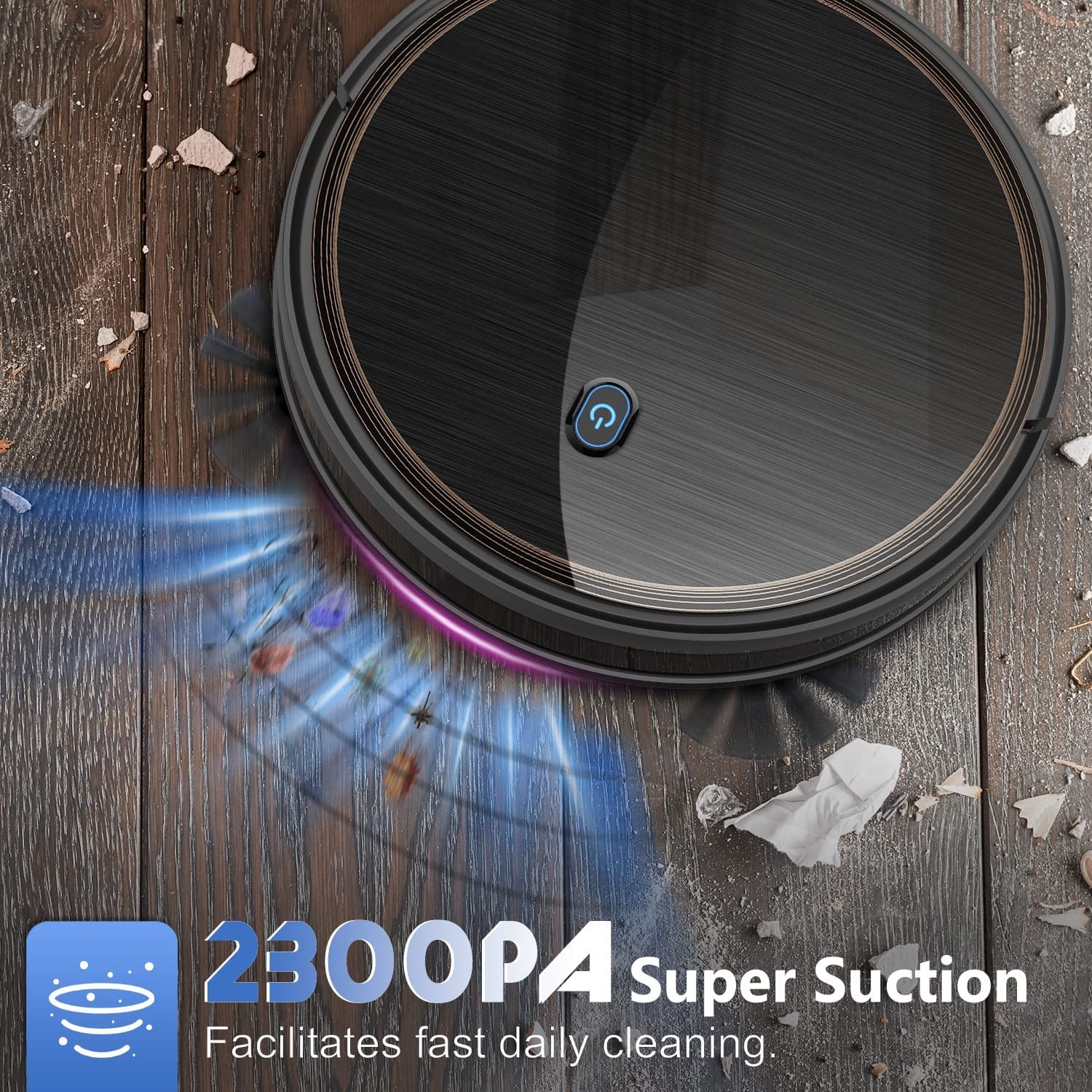 Robot Vacuum, 2100Pa Upgrade Robotic Vacuum Cleaner with Gyroscope, 7.15 cm Slim, Self-Charging Vacuum with Boundary Strips, Quiet Multiple Cleaning Modes Ideal for Pet Hair, Hard Floor, Carpets