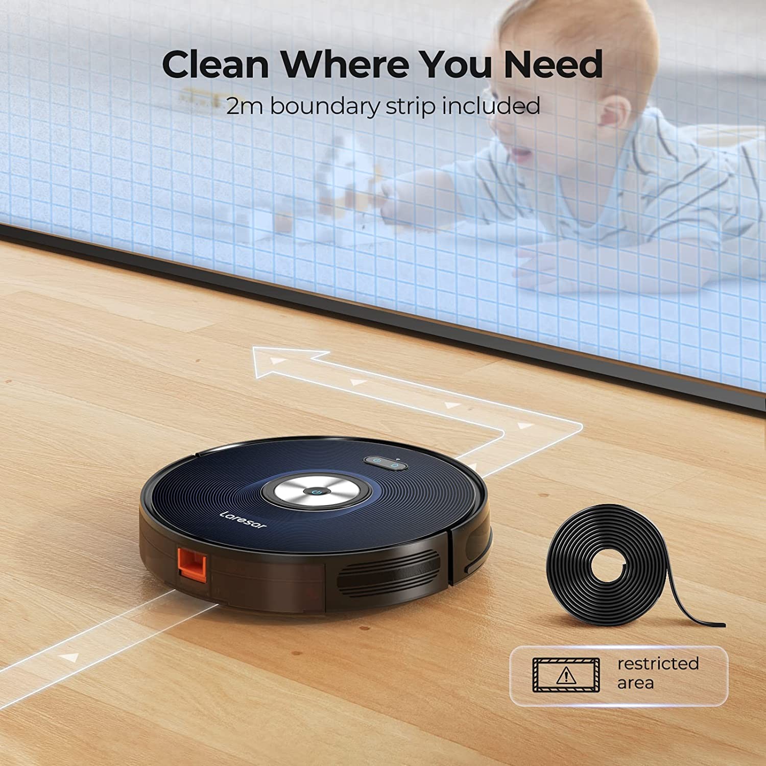 【Boundary Strip & Blue HEPA】There is an extra 2M boundary strip for areas that you don't want your vacuum robot to trespass, and ensure your robot only cleans outside the area. The package also includes an extra blue HEPA filter, which is more effective than ordinary HEPA.