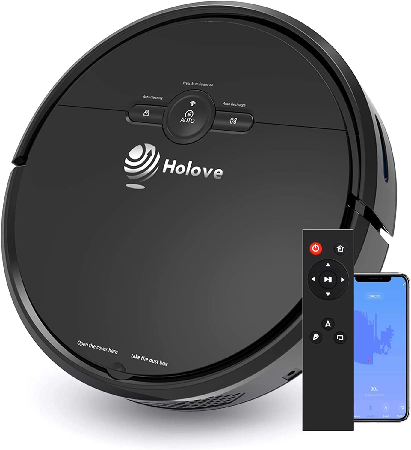 Robot Vacuum Cleaner and Dry Mopping Sweeper, Slim Holove D2 WiFi 1800PA Strong Suction with Automatic Self-Charging, Robotic Vacuum Cleaner for Pet Hair, Hard Floor and Low Pile Carpet