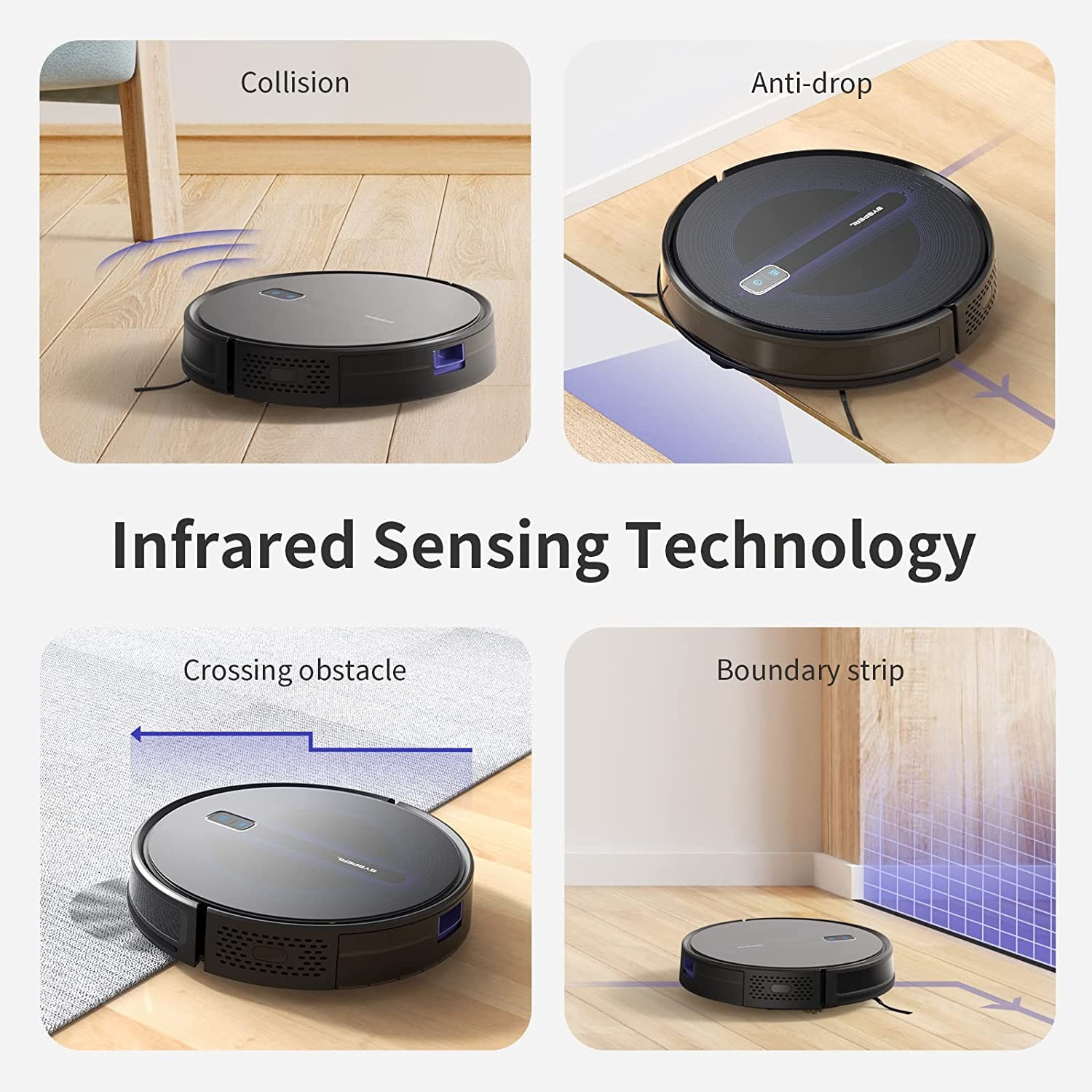 2600Pa Adjustable Strong Suction Robotic vacuum: 2600Pa powerful suction can suck up coffee beans and oat from hard floor,the SYSPERL vacuum cleaner robot can help you effectively pick up pet hair and dust from carpet.Robot vacuum 2 side brushes designed for clean thoroughly and avoid clogging and hair tangles.The robot cleaner great for pet owners.The 3 adjustable levels suction can freely switch to better clean. High-Capacity Battery 2600mAh & Self-Charging:The SYSPERL automatic vacuum uses lithium iron have a longer life,better safety. The sweeping robot up to 120Mins runtime about 150 sqft and vacuum robot cleaner will go back to the charging base automatically when run out of battery or finish cleaning. 4 Cleaning Modes Meet Your Needs:self vacuum cleaner robot supports 4 clean modes including Auto cleaning mode, Spot cleaning mode, Edge cleaning mode and Manual control clean mode to meet different cleaning needs.The self cleaning vacuum robot built-in Anti-bump and Anti-fall sensors so you don't need worry about your robot vaccumaccum falling down stairs or hit other furniture. Work with Alexa Voice&App&Remote:V40P robot vacuum cleaner compatible with Alexa and Google Assistant, conveniently start and stop cleaning by voice commands. Use Tuya smart App,You can easily set clean schedules, choose the clean mode, change the clean direction, finds your home robot effortlessly.Use V40P vacuum robot to save you time and energy! Boost-Intellect Technology: V40P cleaning robot supports boost-intellect technology, which can automatically increase suction power within seconds to help moves easily from hard-surface floor to carpet , once off the carpet, normal suction returns.Auto vacuum cleaner robot floating roller brush design enable smart vacuum close to the surface for an impressive clean.