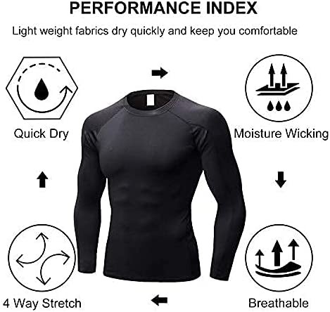 100% Polyester Pull On closure Machine Wash Men's compression shirts - Moisture Sensing, Quick Dry, and Breathable / Two-Way Air Circulation. These compression shirts for men long sleeve can take sweat fast away from your body and dry quickly which makes you feel comfortable all day. Black compression shirt - Tight-fitting, like a second skin. polyester & spandex for excellent elasticity with enhanced range of motion. Breathable fabric is quick-dry and moisture-wicking and offers stretch and slight compression that is beneficial to most kinds of sports or outdoor activities. Men's sports compression tops - Sun protection clothing men protect your skin from harmful UV rays while you are biking, hiking, or any other sports outdoors. Quick dry lightweight and technical fabric for a comfortable fit. Moisture wicking and breathable fabric provide a cool and cozy feeling for wearing. Long sleeve compression shirts for - Four-Way Stretch fabrics can stretch in every direction, Flat seams minimize muscle friction, our men's active shirts are designed for running, baseball, basketball, football, hiking, cycling, training, soccer, squat, weight training, yoga, etc. Comfort to skin base layers - These compression long sleeve men are super lightweight so you can wear them as an outer layer for spring summer fall or mid-layer for winter.