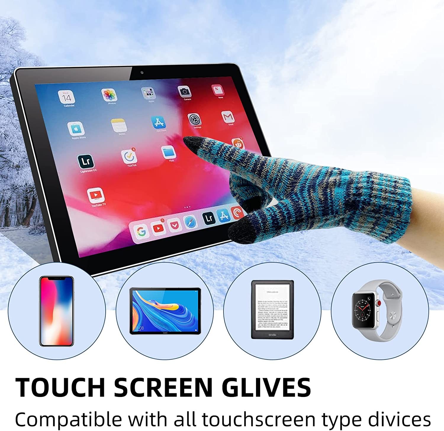 Touch Screen Knit Gloves Equipped: Upgraded touch screen conductive fabric on the thumbs, index fingers and middle fingers; You can use the smartphones, iPads, car touchscreen and other touchscreen devices normally without taking the gloves off.