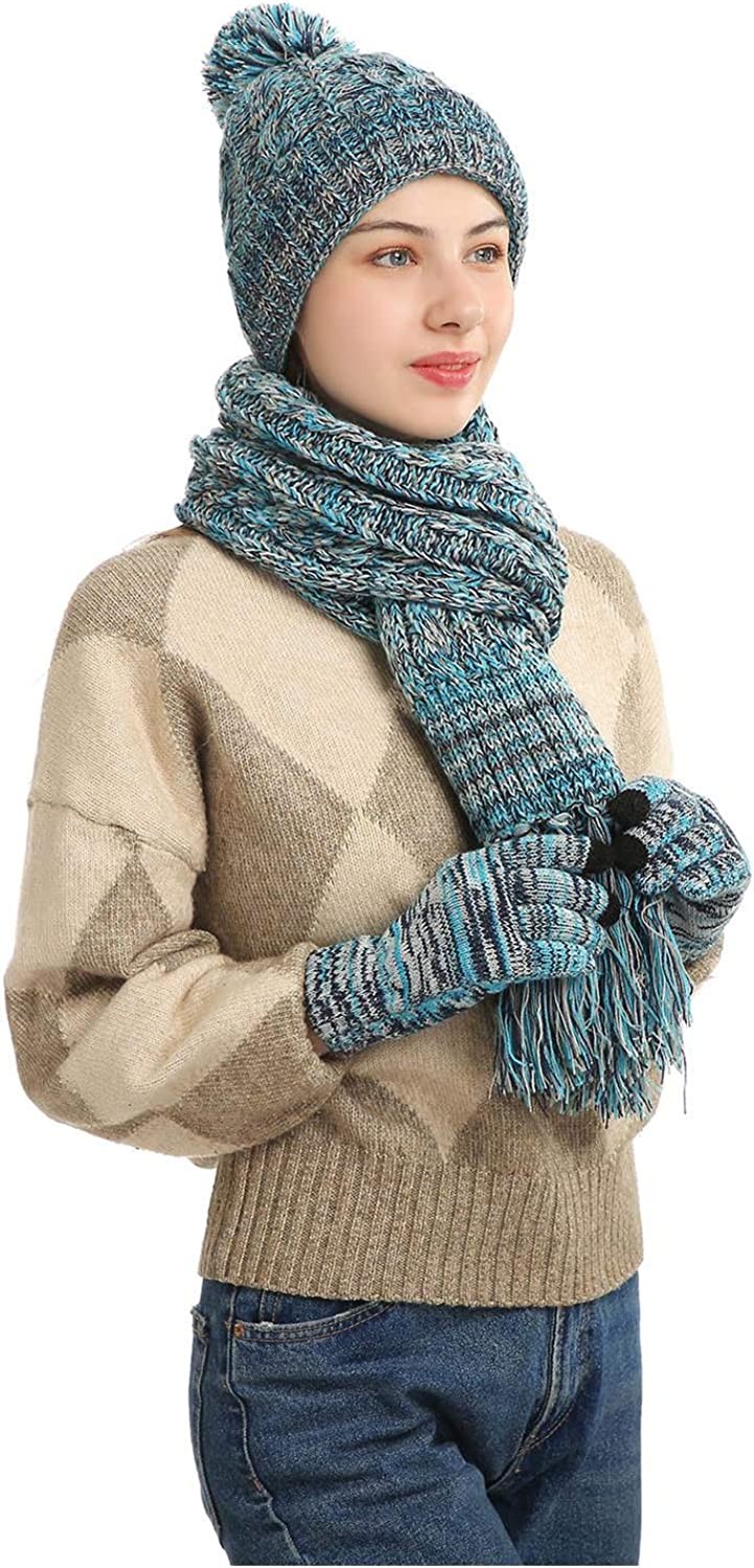 Package Include: 1* Cuffed Thick Beanie Hat + 1* Thermal Neck Warmer Scarf + 1* Pair of Touchscreen Gloves. One Size for Most, They Are Soft and Can Be Stretched to Fit Most Size.