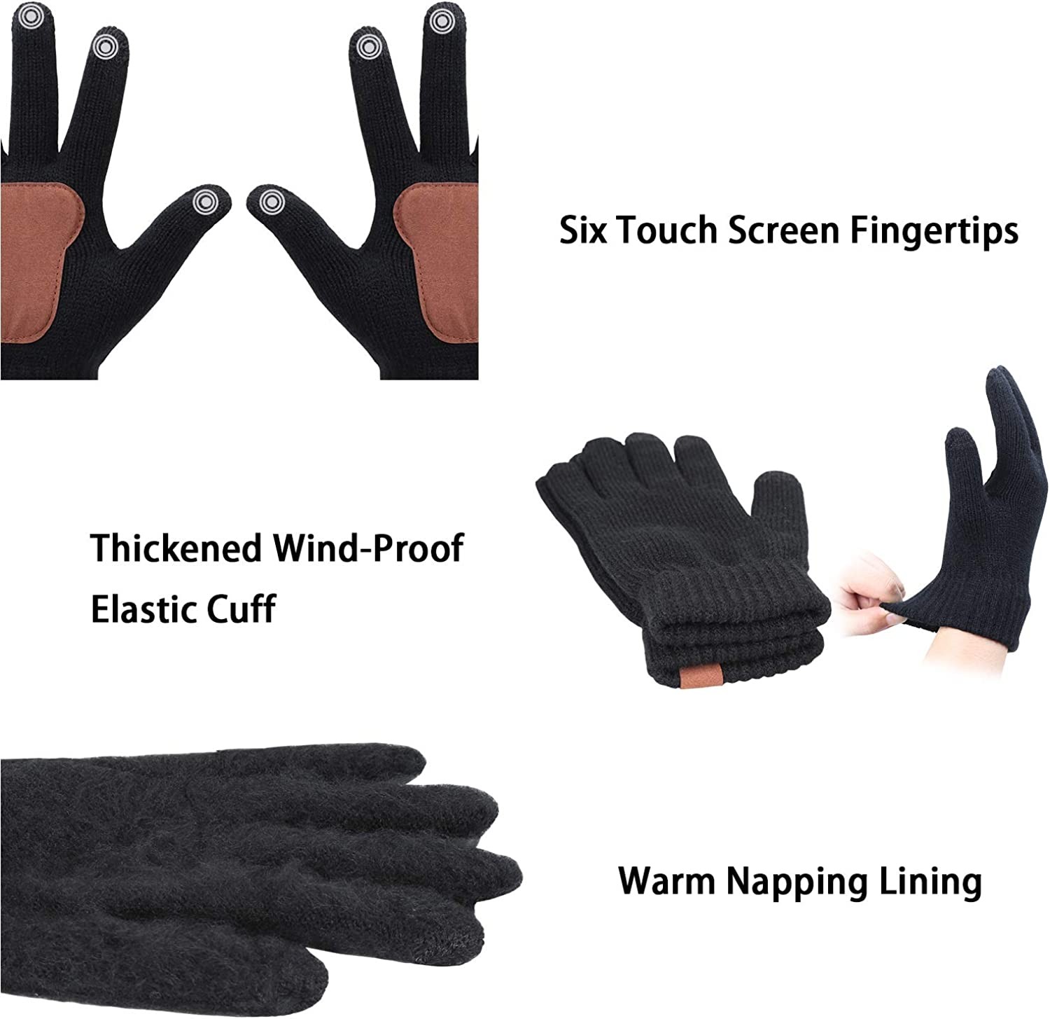 Touch Screen Knit Gloves - Equipped with upgraded touch screen conductive fabric on the thumbs, index fingers and middle fingers; You can use the smartphones, iPads, car touchscreen and other touchscreen devices normally without taking the gloves off.