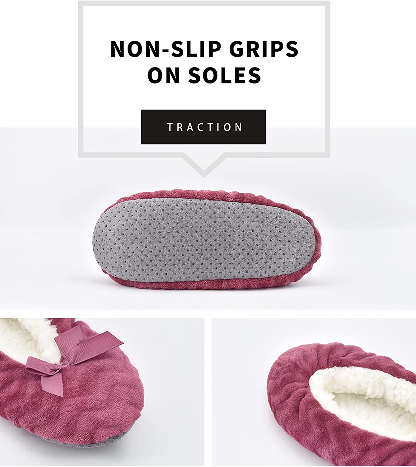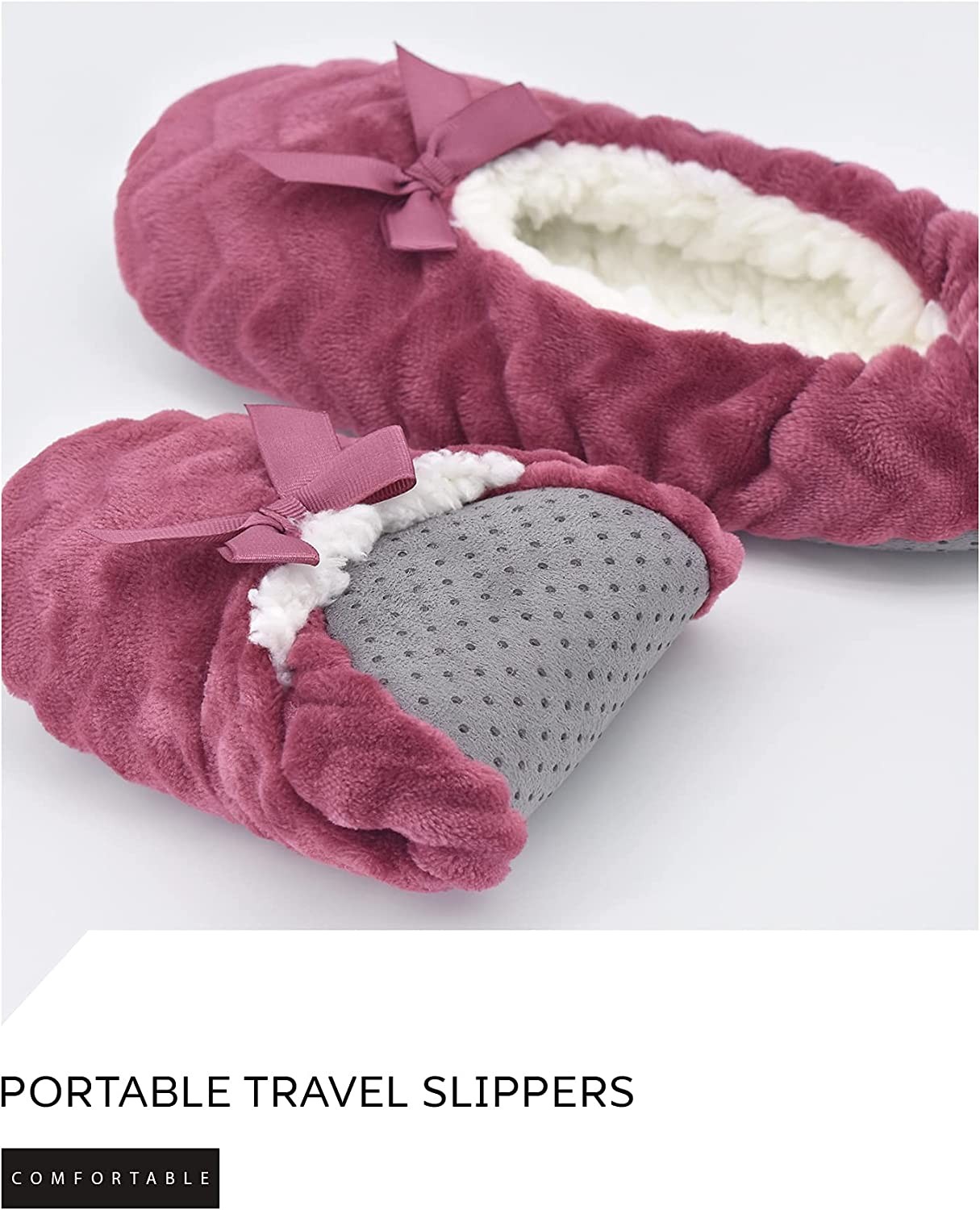 【COMFORTABLE】Designed to be a cross between a sock and a slipper for added warmth and comfort.Unique cute pattern design makes slippers look fashionable and lovely .The slipper socks is made up of breathable polyester fabric and comfy fuzzy lining ,keep your feet warm but don't make your feet hot.The seams of the slipper socks adopt double stitched design, so that the vamp and sole are not easy to fall off. 【ANTI-SKID】A foam-padded sole on the thick and soft bottom,keeping your feet insulated from cold floors and reduce the noise when you walk on the floor.Silicone grip dots on each sole give your feet extra traction on the floor. Durable soles allow slipper to last longer. 【MULTI-USE】Lightweight and packable slippers is a good travel companion. After a long day of work,you can enjoy amazing comfort of these house slippers.These soft and comfortable are also a good choice if the feet are swollen or painful. 【BEST GIFT】Perfect to be a Birthday/Christmas/Halloween gift to your family members,colleagues,and friends. Ideal for bedroom, home, dorm room or office. 【SIZE &CARE INSTRUCTION】Dear customer,our size is True to US size.Machine washable on cold or hand wash, gentle dry (do not tumble dry) and do not iron.We are so confident that you will love our cozy fuzzy slippers.If you're not 100% satisfied, please send them back for a full refund. Select your favorite color and ""Add to Cart"" now