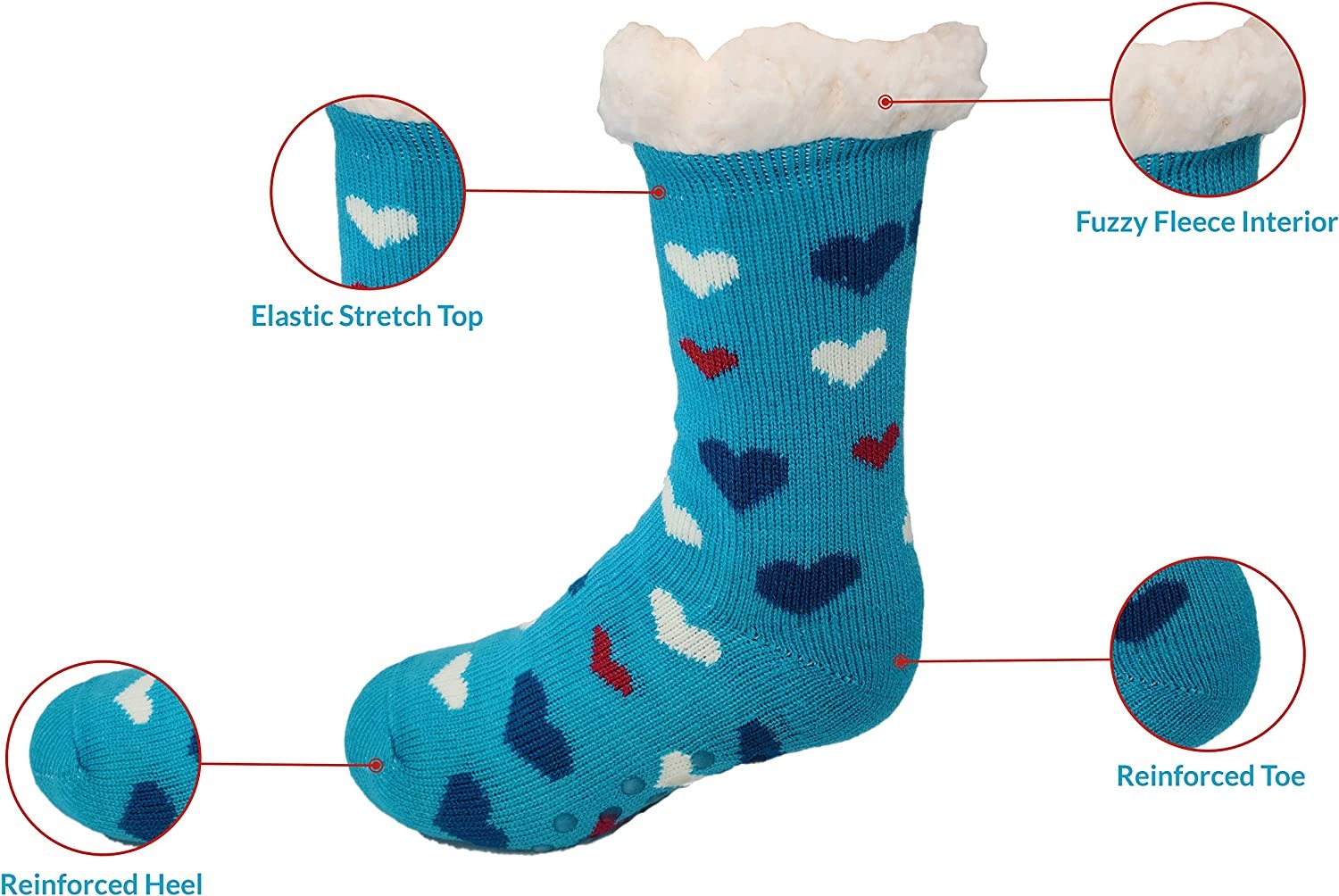 WARM AND PLUSH: These cozy women's winter socks are thick, warm, and comfortable. Lined with a plush thermal interior these socks will keep you warm and well protected against the extreme cold weather. The fleece lined socks for women can also be used as leg warmers under your boots. NON-SLIP GRIP: Designed with you in mind, these womens winter socks feature an anti-slip grip bottom to keep you safe. These womens warm socks will stick to your shoes or boots to provide ultimate warmth and comfort. It will also keep you safe and prevent slips and falls in house. INDOOR AND OUTDOOR USE: Our womens slipper socks with grips are perfect to use on your favorite outdoor activity like hiking, hunting, skiing, running, or cycling. The warm fluffy socks are great for sleeping socks on a cold winter day and for padding around the house. CHRISTMAS GIFT: Choose from the many colors and patterns available to gift your loved one. A merry Christmas, a happy birthday, or just because, this cozy patterned plush sock for women will surely warm their hearts. SATISFACTION GUARANTEE: Your satisfaction is our commitment. If our thick lined non skid socks do not meet your expectations contact us directly and we will help you get what you need.