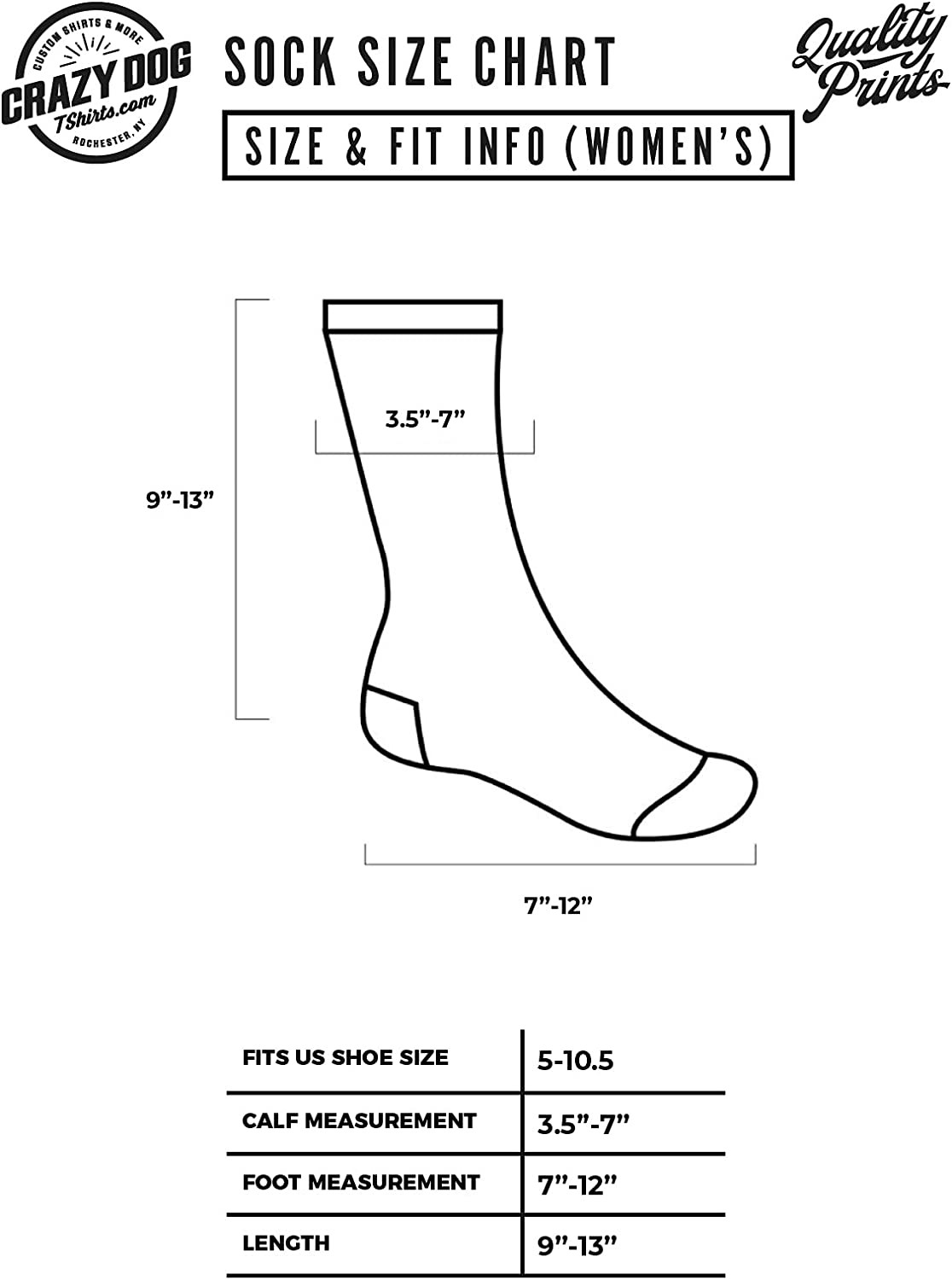 ALWAYS FUN: There's no right or wrong way to wear our funny and crazy socks - put em on your hands if you want! And there's no right or left either. Our awesome socks feature colorful panoramic art that's awesome from every angle - just like you! PREMIER QUALTIY: Professionally embroidered super soft hilarious footwear. Our sarcasm never gets old. The lightweight fashion cotton crew socks are made from ultra soft material to get that comfortable fit and feel. Once you put these on your feet you won't want to take them off. COMFORTABLE SOCKS: Exclusive Crazy Dog branded dress sock. Professionally embroidered super soft and humourous footwear. Tight knit stitching and high thread count ensure these socks will last. The novelty never wears off a joke that keeps giving with these fun sayings. One size fits all from nerdy to geeky. Machine washable (wash inside out in cold water). BEST GIFTS: Cool socks are great for your brother, sister, Mom, Dad, family and friends and make ideal Christmas, birthday, anniversary, and holiday presents or surpising a significant other on a special occasion. They're great geek gifts ideas for a nerd with a sarcastic sense of humor. This is a women's sock; Check our other listings for this design on a t-shirt or other apparel item