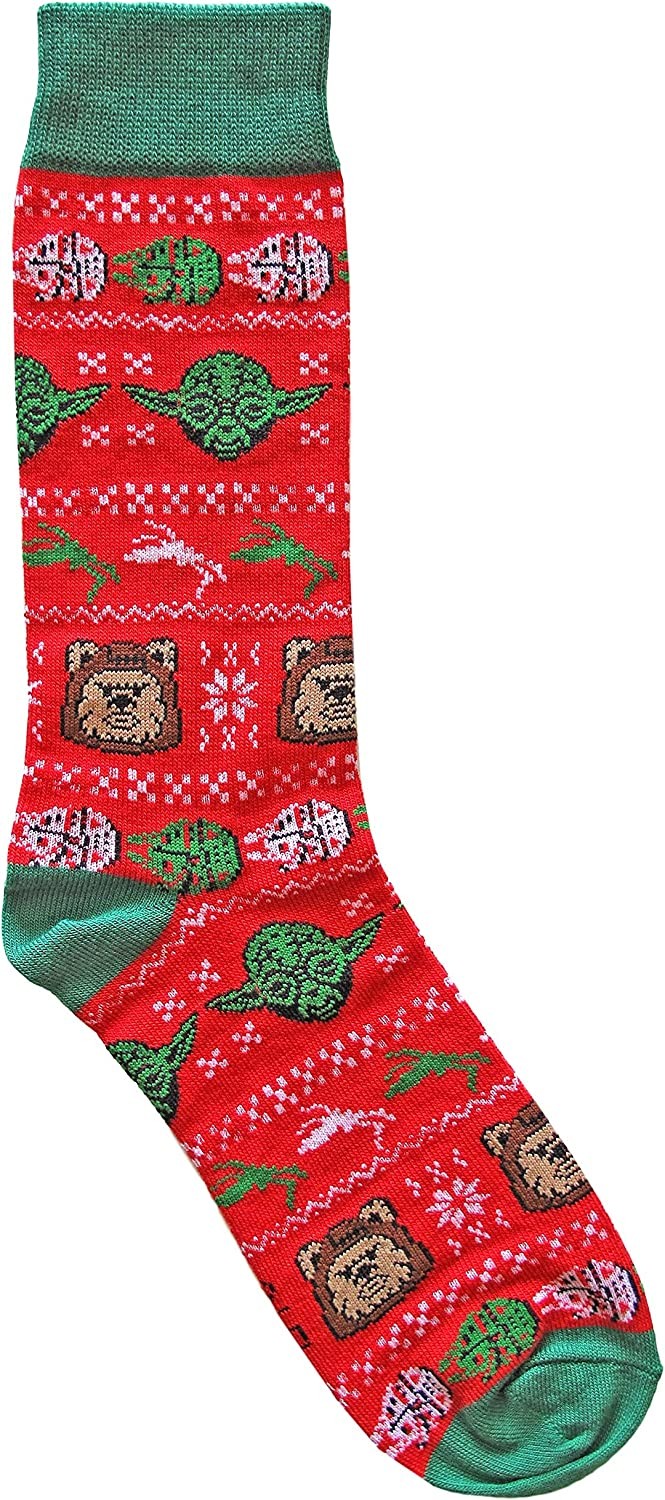 Star Wars Wicket Ewok/Yoda Ugly Sweater Pattern Men's Crew Christmas Socks