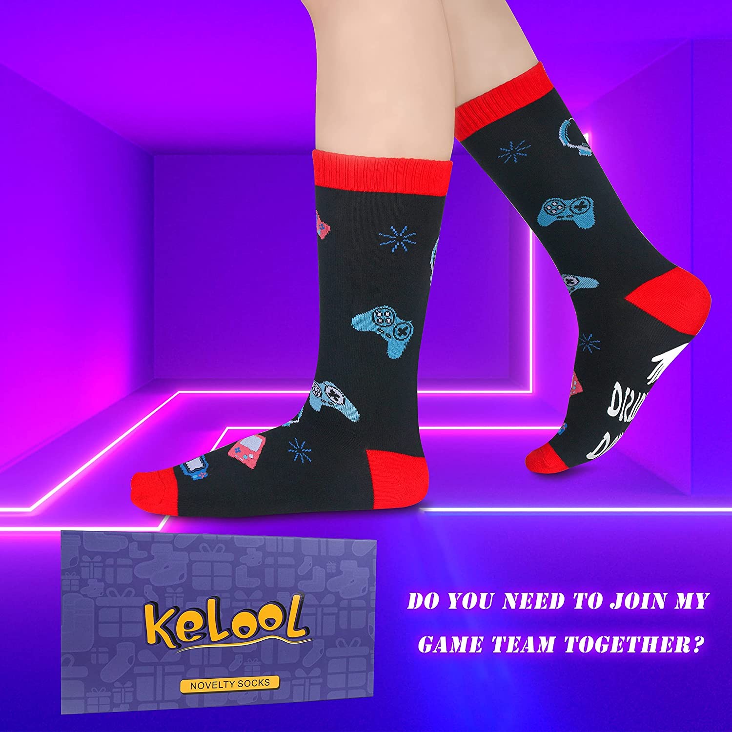 【Gamer Socks for Easy Put On and Off】The funny gamer socks are amazing quality, hold up well to washing,and easy to get on and off,perfect stretchy.The socks have nice wide top band without slip off.