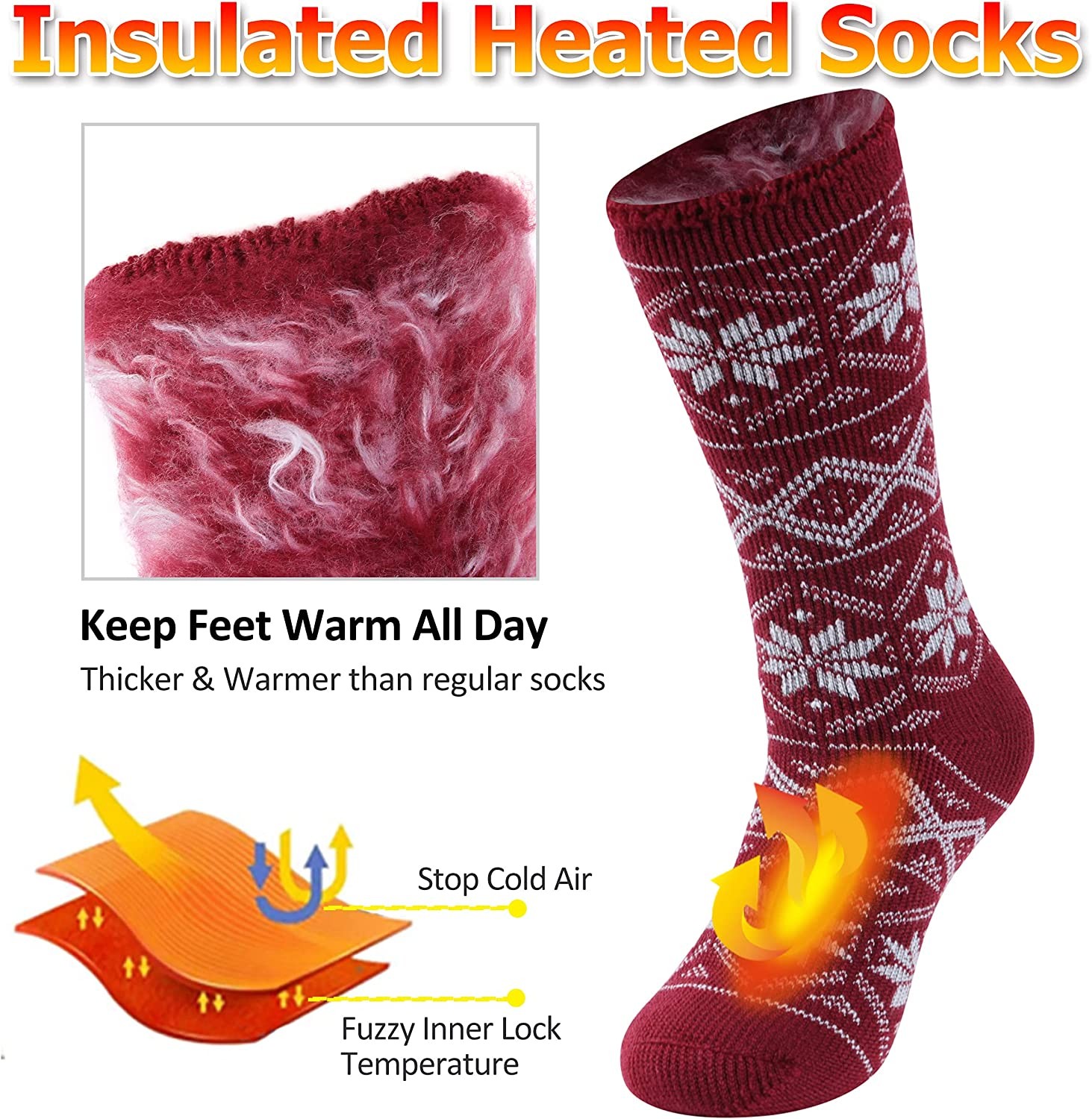 FIT MANY OCCASIONS: We have various classical colors for you to match with your pants and shoes. Means these fashion heated thermal socks can be men women's boots sports socks like skiing, snowboarding, hiking, camping, climbing, trekking, fishing and so on. You can wear them as cabin socks, home floor slipper socks, heavy work socks, warm house sleeping socks, daily casual socks or athletic outdoor trail cold weather gear in Spring, Fall, Winter Season Or In Any Cold Weather Areas or Snow