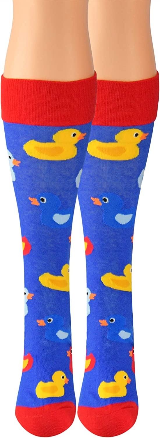 CUTE GRAPHIC SOCKS: These cute and colorful socks feature a fun design with a cartoon-style rubber duck pattern. With blue, red, and yellow ducks, our long novelty socks will be a hit no matter where you wear them! Add them to your sports gear to bring a pop of color to the next big game, or wear them at home for the relaxing break you deserve.
