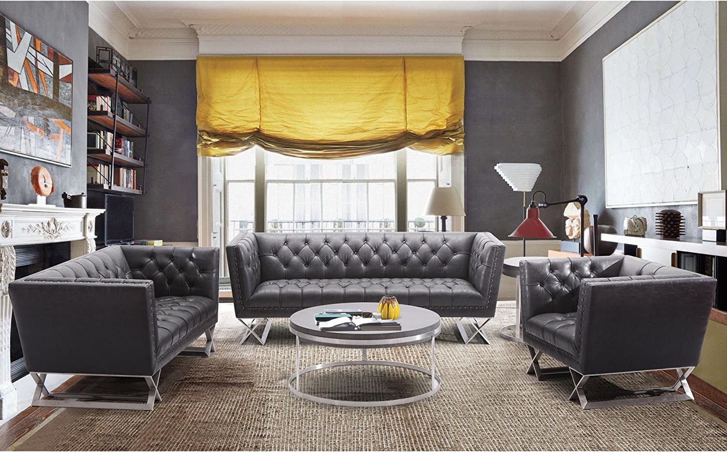 Elegant Criss-cross leg design with tufted fabric seating