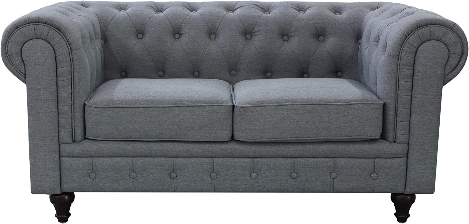 US Pride Furniture Linen Fabric Chesterfield Sofa Set, Grey