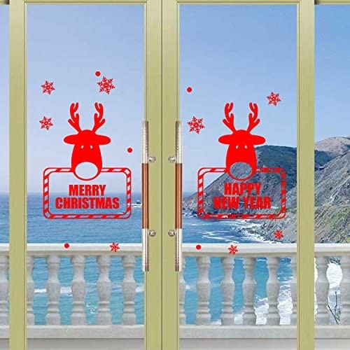 Home Find 29 inches x 23 inches Set of 2 Reindeer Frames with Letters Merry Christmas Happy New Year Wall Decals Living Room Bedroom Window Showcase Stickers Decoration Removable Christmas Home Decor