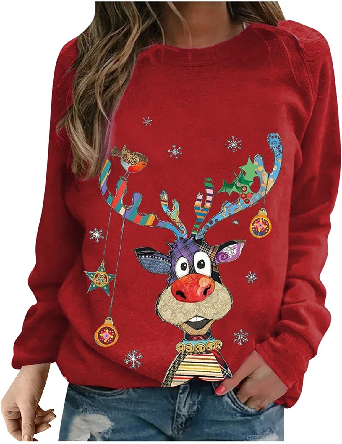 Cute Reindeer Elk Print Sweatshirts - Match: This cute christmas shirt is ideal to pair with jeans, trousers other pants. With Xmas shirts blouse, you can easily get fashionable outfits. Ideal Christmas gift for your mom, daughter, aunt, grandma, girlfriend, wife, friend.