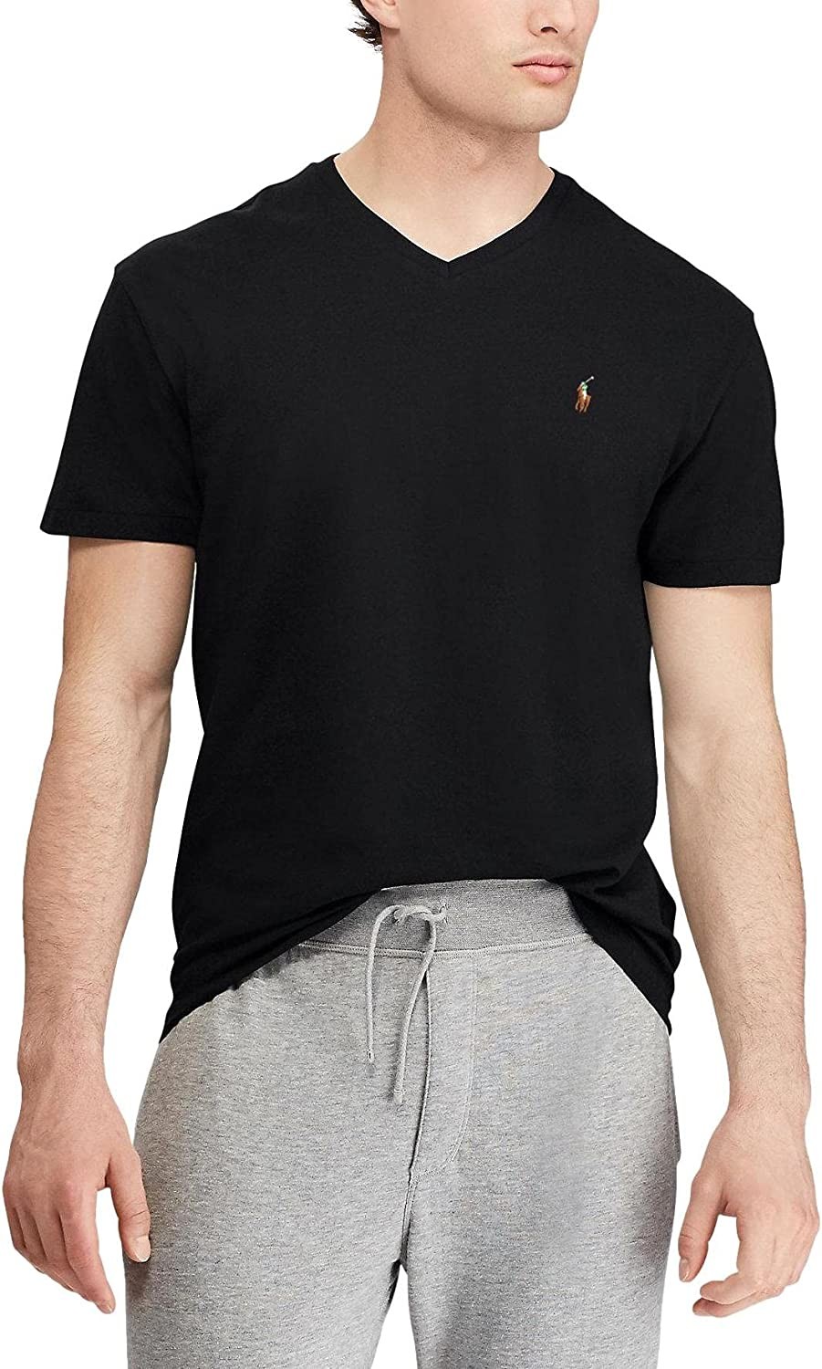Classic Fit: our roomiest silhouette. Cut for a lower armhole and a fuller sleeve that falls closer to the elbow. Size medium has a 28½" body length (front and back), a 20" shoulder, and a 44" chest. V-neck. Short sleeves. Signature embroidered Pony at the left chest. Cotton. Machine washable. Imported.