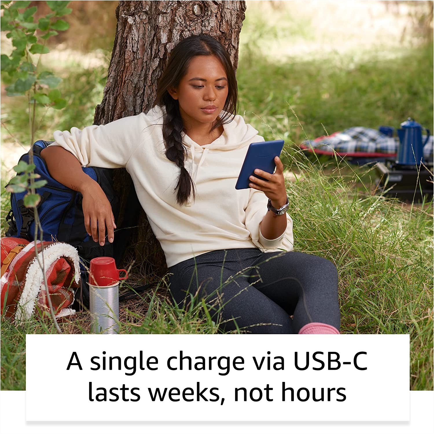 The lightest and most compact Kindle, now with a 300 ppi high-resolution display for sharp text and images. Read comfortably with a glare-free, paper-like display. The adjustable front light and dark mode make reading effortless, day and night. Get lost in your story. Tune out messages, emails, and social media with a distraction-free device specifically made for reading. Now with extended battery life – A single charge via USB-C lasts up to 6 weeks. Now with 16 GB to store thousands of books – Double the storage capacity of the previous generation. Find new stories – With Kindle Unlimited, get unlimited access to over 2 million titles, thousands of audiobooks, and more. Designed with sustainability in mind. This Kindle uses 30-75% recycled plastics and 90% recycled magnesium and has 100% recyclable device packaging.
