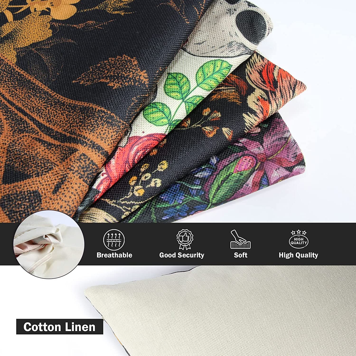 Linen ? More than just Halloween decorations ? This one-sided printed fall pillowcase includes 4 pillowcases, no pillow insert included. We have combined some elements that can be used for Halloween with roses or other flower species and made aesthetic designs, including ravens, skulls, raven bones, ravens standing on skulls and other patterns that can be used with Halloween, but also for some horror aesthetic theme decoration ? Unique aesthetic decoration ? These specially designed pillowcases are suitable for many unique occasions, such as divination, astrology, fortune telling, certain religious ceremonies, and other environments that require a mystical atmosphere. Although it makes people feel a little scary, but this is an important part of the horror aesthetic. Of course this is certainly very suitable for Halloween, if you are looking for a unique Halloween decoration, this is the best choice. ? Easy to fit pillows ? The pillowcase kit is easy to wear and machine wash, and the zipper location is better hidden when you fit the pillows, then simply place it on the couch or anywhere to decorate your home for a Halloween themed dinner, party or other event. ? Suitable size for most occasions ? 4 pillow covers measuring 18 x 18 inches / 45x45 cm (0.5 cm deviation) for indoor and outdoor decorations. The colors are also classic Halloween colors, black and white and orange, which can match perfectly with other different Halloween pie decorations. ? Comfortable and durable Halloween pillowcase ? Specially designed pillowcase with invisible zipper, made of breathable material, comfortable and durable, can decorate your home, is a wonderful Halloween gift and perfect home decoration. If you have any questions, please contact us through "Ask a question" and we will try our best to help you.