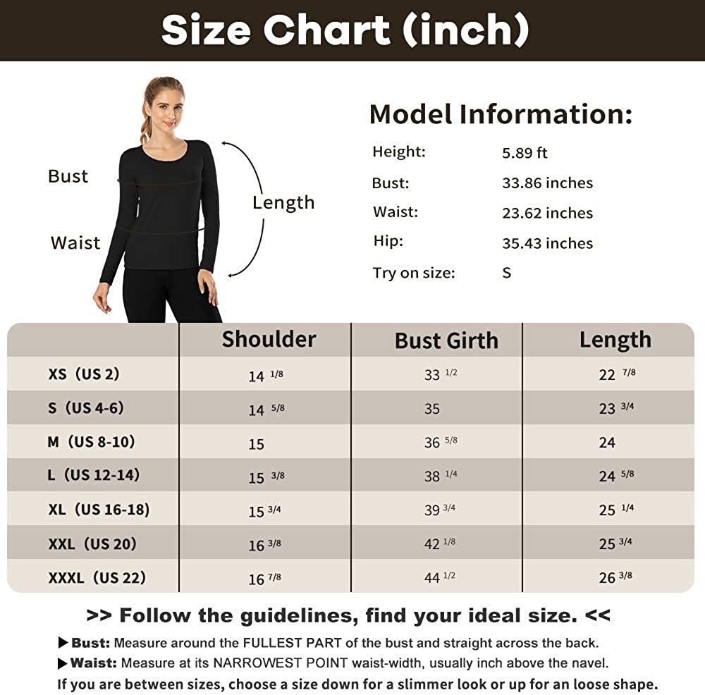 95% Polyester, 5% Spandex Imported ?TOP ONLY?【Model Size】Small (US Size 4), Height: 5.67 ft, Weight: 123.5 lbs, Bust: 33 1/16 inches, Waist: 23 5/8 inches, Hip: 35 7/16 inches. Pull on closure ?【ULTRA SOFT & COMFY FABRIC】 MANCYFIT thermal top for women is designed for advanced coverage and extra comfort. Made of Polyester 95% + spandex 5% blend skin-touch fabric, this thermal underwear is super soft and breathable, evaporates moisture and provides comfortable wearing experience. ?【FOUR WAY STRETCHABLE】Our thermal shirts for women fit your perfect curve but not too tight. Stretchy fabric of this long sleeve thermal top offers free movement and flexibility under your outer styling, reduce your burden of wearing. You will feel relaxed with the perfectly hidden long johns shirts. ?【KEEP WARM IN NICE FLEECE】Perfect for cold weather, our fleece tops for women in normal thickness will keep your body in a comfortable temperature, add warmth and reduce heat loss. Long underwear works excellently during your winter activities like snowboarding or Iceland trip. ?【PERECT BASE LAYER UNDERWEAR】Classic black thermal long underwear will be your must-have layering piece in this white winter. You can wear it as base layer undershirt for your outdoor activity, or a casual pajama tops at home. ?【FAST SHIPPING & PRODUCT GUARANTEE】Add Thermal Shirts for Women Long Sleeve to your cart, you will own a 30-day, full-money-back warranty and can be returned or exchanged if you are unsatisfied on this item. Search MANCYFIT thermal underwear, you will find the piece you want for this winter.