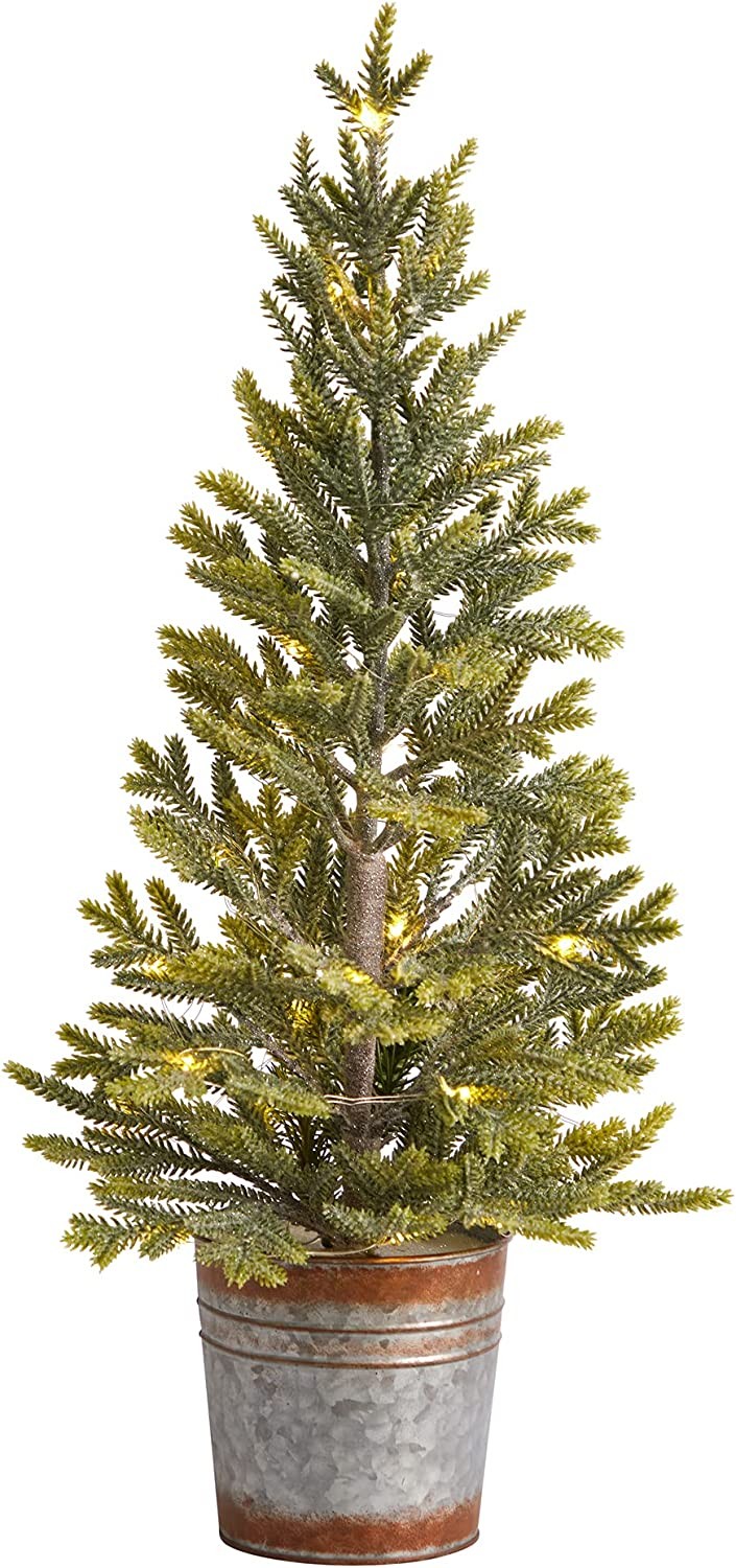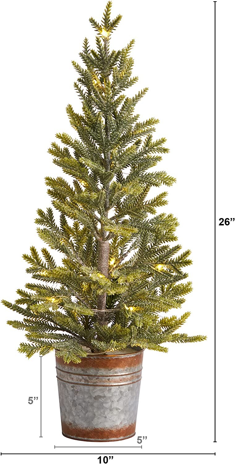 Plastic, Iron Wire, Metal Completely maintenance-free, this incredibly lifelike tree boasts a ‘natural look’ of sparse by design easy-to-bend branches, perfect for showcasing all your favorite holiday ornaments and decorative accents. Standing 26in. tall from a decorative planter (included in height), this artificial tree would help create a traditional Christmas setting wherever displayed. QUALITY MATERIALS: Shop with confidence knowing our collections "look so real, they're Nearly Natural!"; We source products with a sound and in-depth knowledge of our industry - Nature Overall Product Dimensions: H: 26 In. W: 10 In. D: 10 In.; Planter Dimensions: H: 5 In. W: 5 In. D: 5 In. ; Measurements are calculated from each furthest outstretched dimension NO MAINTENANCE REQUIRED - No Watering or Trimming. Looks full and fresh every day Made from high-quality materials ; Pre-strung with 35 warm lights ; Perfect for a tabletop ; Battery Operated (3xAA) ; Recommended for indoor use only ; Item will need to be re-shaped when removed from the box; this tree can easily bend for reshaping purposes - please separate and fluff the branches to achieve desired fullness
