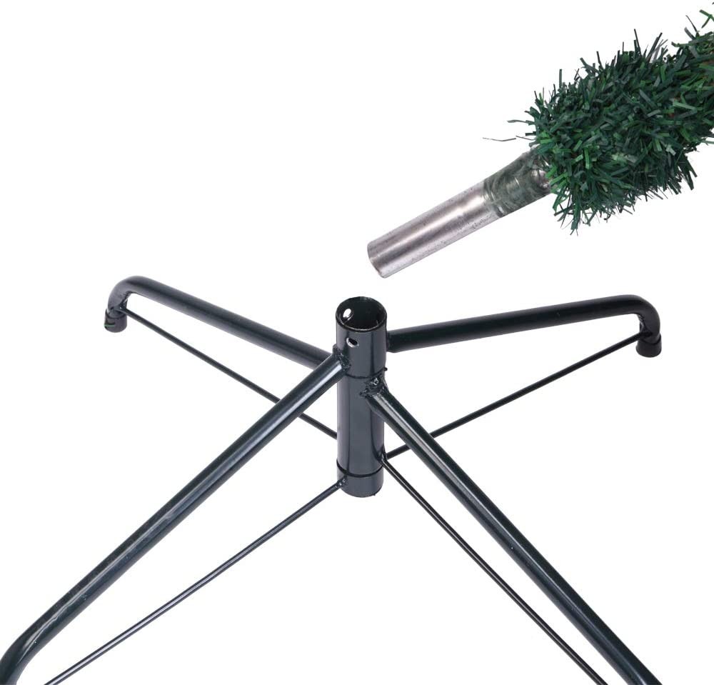 Easy setup: Main branches drops down in one second. To finish the assembly of this tree it requires only 3 steps, after putting branches and metal stand together, all the tree requires you to do is straighten out the branches Full height size: Our 6ft size not including top small tip height, actual height will taller than 7ft More tips: 870 branches are elaborated with to show the vivid tree Sturdy and realistic: Metal tree base with 3 screws provides stability to keep your tree standing more stable. The blades of Christmas tree are made from high quality PVC material, it shows more real and more nature Warranty 100%: We offer you prime satisfaction customer service to guarantee to let you buy with confidence