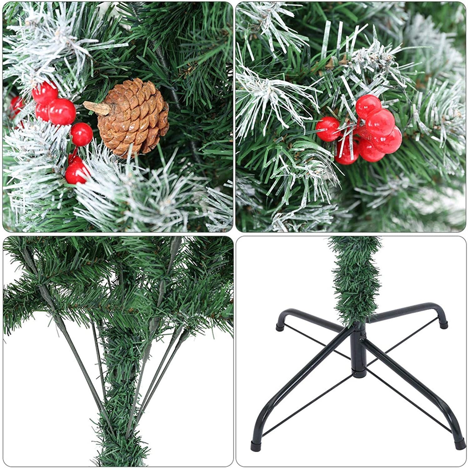 ?Realistic shape: The needles of this Christmas tree are made of high-quality environmentally friendly PVC, which is absolutely safe to use and looks more real. In addition, 600 branching techniques will help imitate soft trees. The foldable metal hinge used to fix the main branch is strong and durable. Unfolding will form many small branches, which are soft and bendable, and can be fluffy into the desired appearance ?Unique design: This Christmas tree will perfectly blend with the winter scenery. There is no doubt that this three-dimensional Christmas tree can be an attractive choice for indoor and outdoor decorations (especially Christmas). The beautiful fluffy tree, pine cones and berries, the white snow on the pine needles is like snowflakes falling on the tree, making the entire Christmas tree It looks warmer and adds a Christmas atmosphere to your family ?Easy to install: The Christmas tree uses clear instructions, divided into three parts, easy to assemble, disassemble and store. In addition, the hinge branches of this Christmas tree will be easier to expand, look more vivid, and save a lot of time ?Sturdy metal bracket: Equipped with a sturdy iron bracket, this Christmas tree is stable and durable and has a long service life. Compared with cheap plastic brackets, our metal brackets will provide greater support and balance for trees, keep them upright and prevent breakage, and are more durable ?Reminder: Because we want to reduce the amount of packaging, the branches of the Christmas tree will be pressed together when the product is received. You need to manually open the branch yourself. This will not delay you for a long time. Instead, you can enjoy yourself. If you have a child at home, you can exercise his hands-on ability