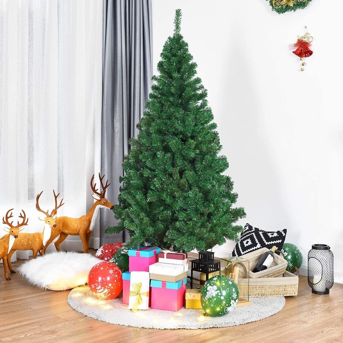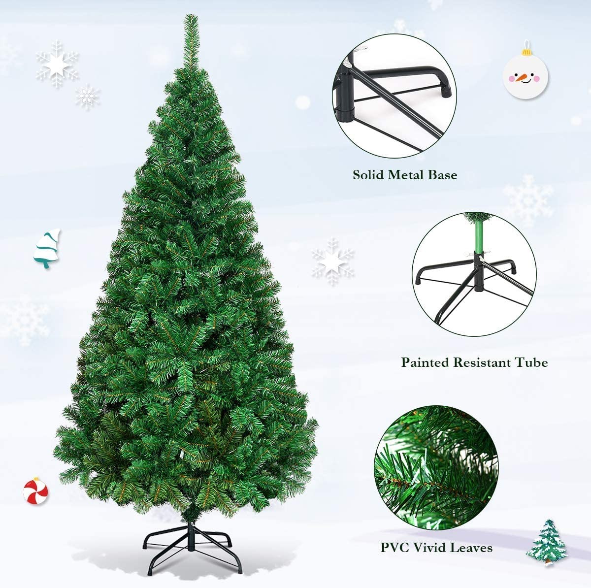 ??【Durable & Premium PVC Material】: Environmentally friendly PVC material, resistant to fading and pressure, extending its service time, the tip is finely crafted into a natural evergreen tree with lifelike leaves. ??【Sturdy Metal Base for Stability】: Equipped with a metal stand base, this Christmas tree is more stable, able to maintain balance and can always remain upright during use. ??【Foldable Design】: When you don't need this Christmas tree and want to store it, just take it apart. Our Christmas pine tree can be divided into several parts, fold all the branches and put all the parts into a box, which is very space-saving. ??【Convenient Assembly】: Only a few steps are needed to complete the assembly of this Christmas tree. After putting the trunk and metal stand together, straighten the branches so that the tree can achieve a fluffy and vivid effect. ??【Perfect Christmas Decoration】: This Christmas tree is suitable for your indoor and outdoor decorations to create a happy and prosperous holiday atmosphere. You and your family can use your imagination to add beautiful decorations to this Christmas tree.